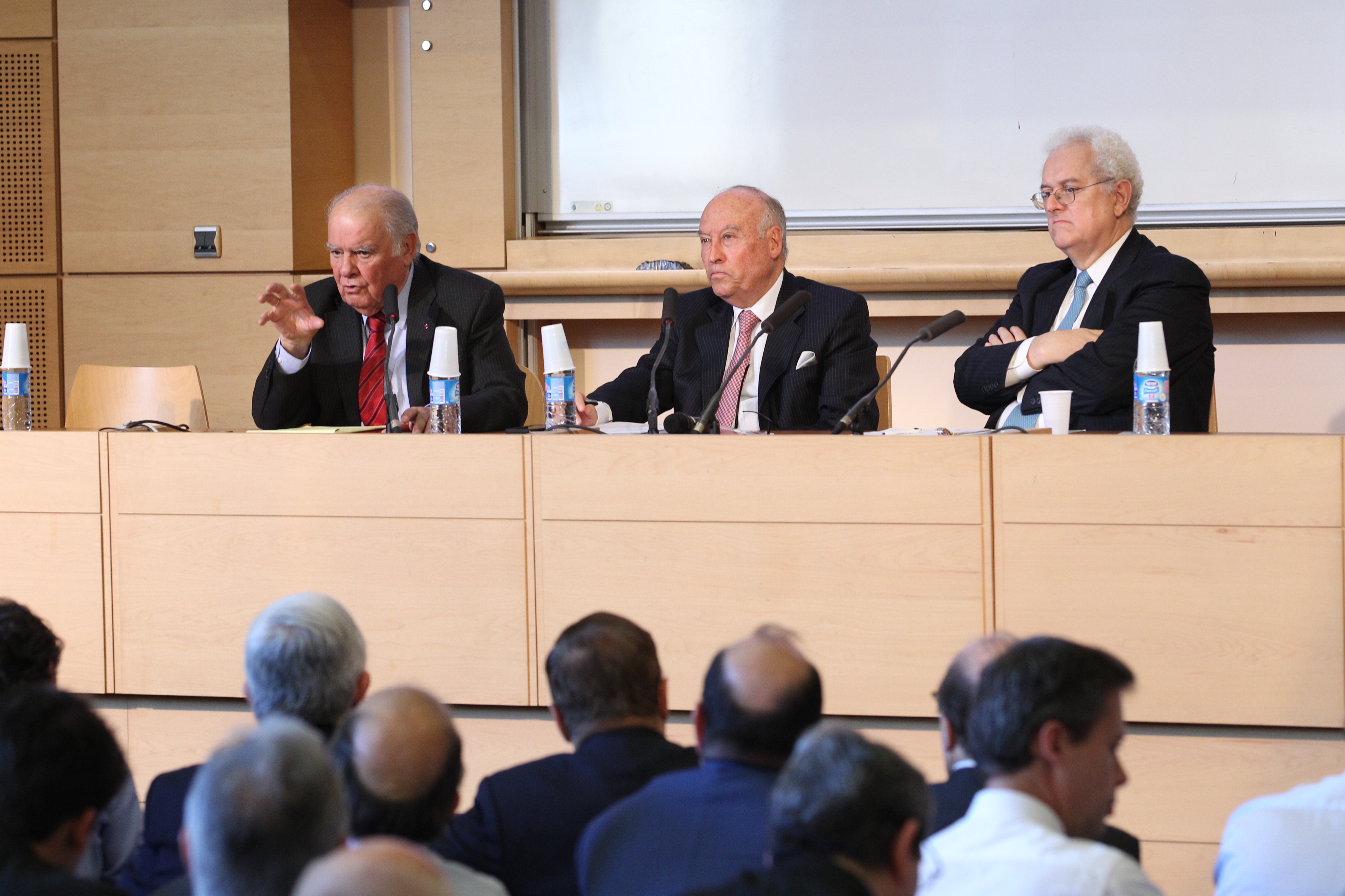 At the end of the lecture by the former President of Uruguay, a debate was held on the trends of world economy and its impact in Latin America, which included Enrique Iglesias, former Iberoamerican General Secretary and former President of the IDB; José Antonio Ocampo, Professor at Columbia University, and former Finance Minister of Colombia, with the presence of Enrique García, executive president of CAF - development bank of Latin America, as a moderator.
