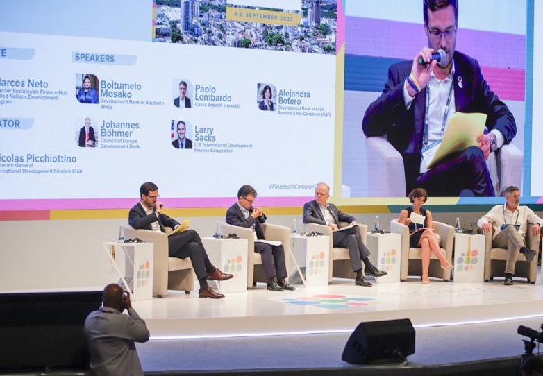 Participating attendees to Plenary 4 included Marcos Neto, Director of the Sustainable Finance Hub of the United Nations Development Program (UNDP); Boitumelo Mosako, Chief Financial Officer of the Southern African Development Bank; Paolo Lombardo, Director of the Department of International Cooperation and Development Finance at Cassa Depositi e Prestiti (Italy); Johannes Böhmer, Vice-Governor for Social Development of the European Bank for Development; Alejandra Botero, Manager of Planning and Development Impact at CAF; and Larry Sacks, Director of Development at the U.S. International Development Finance Corporation.