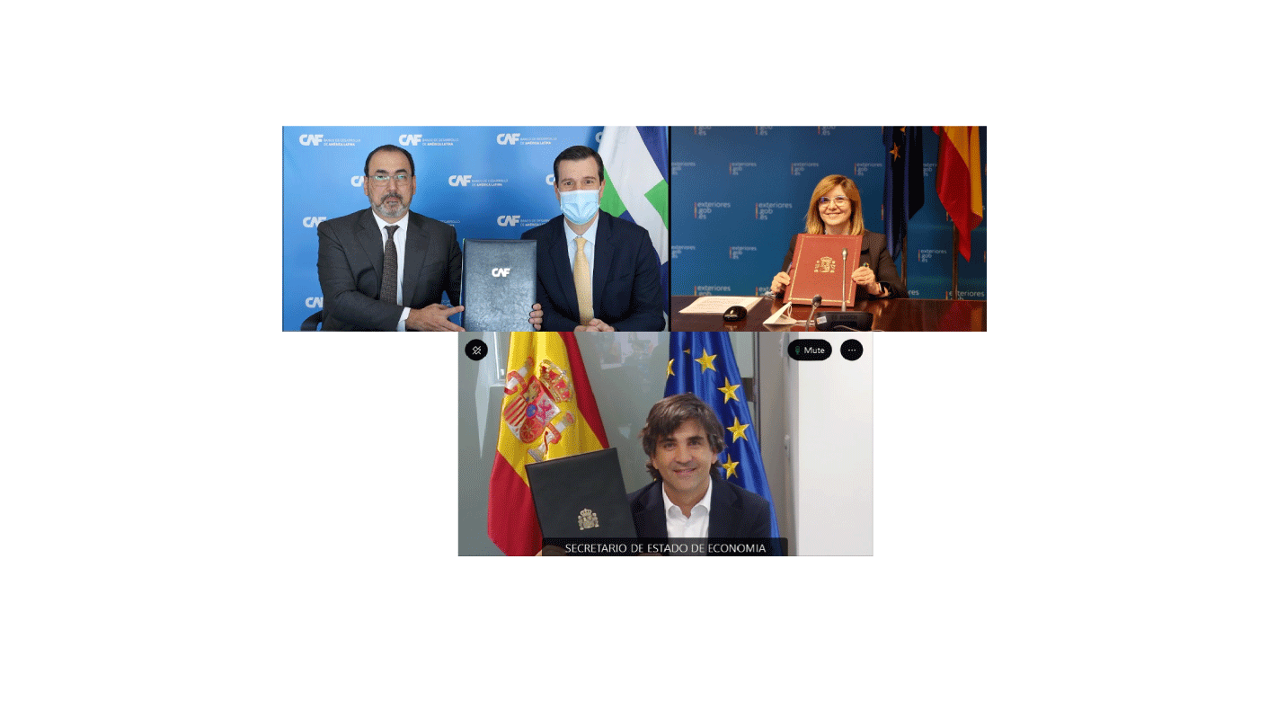 The agreement signed by Gonzalo García Andrés, Secretary of Economy and Business Support and Pilar Cancela Rodríguez, Secretary of State for International Cooperation for the Kingdom of Spain and Sergio Díaz-Granados, executive president of CAF, comes at a historic moment in which the countries of the region are looking for sustainable ways to recover after the economic and social impacts caused by the COVID-19 pandemic.