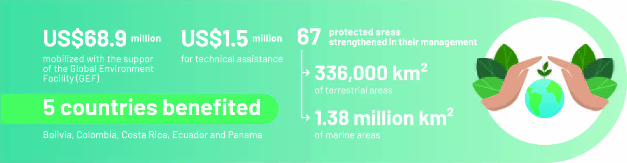 In recent years, CAF has mobilized a total of USD 68.9 million with the Global Environment Facility (GEF), and provided technical assistance for USD 1.5 million to strengthen the management of protected areas.