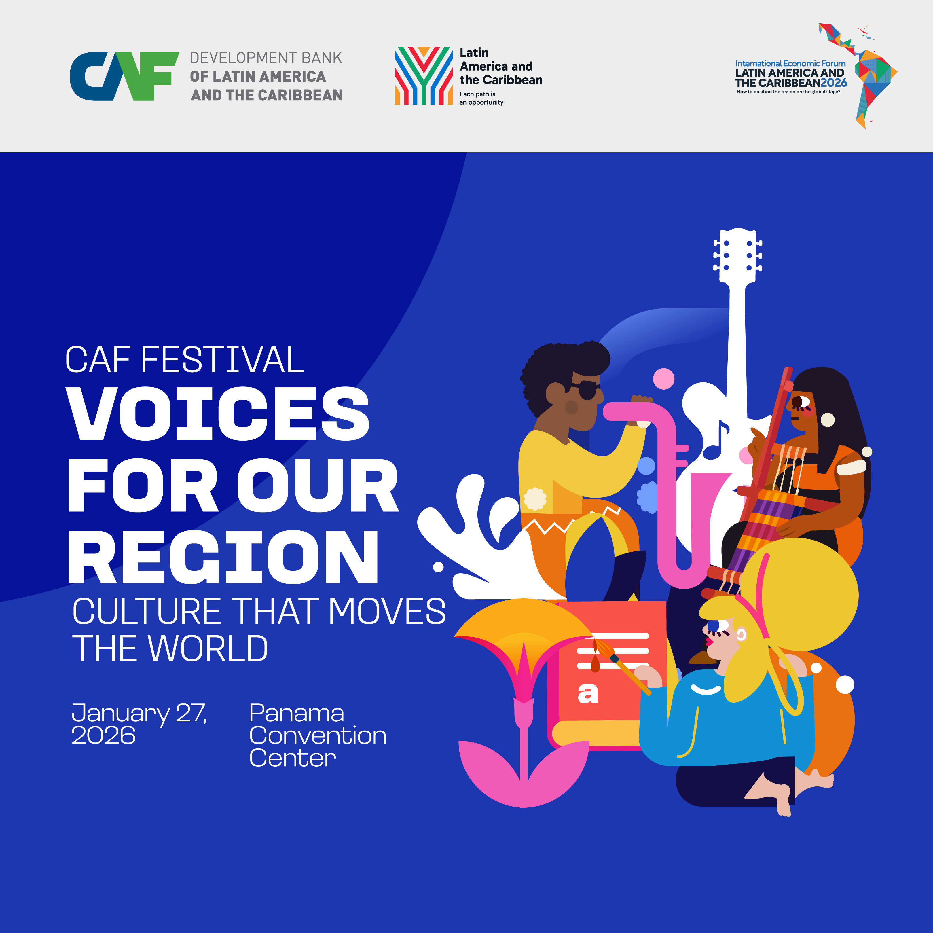 The International Economic Forum Latin America and Caribbean 2026, organized by CAF—Development Bank of Latin America and the Caribbean—in partnership with the Government of Panama, is a high-level event that brings together business leaders, influential figures, and decision-makers to reflect on the region's most pressing challenges and, through dialogue, develop solutions that promote growth, inclusion, and competitiveness.