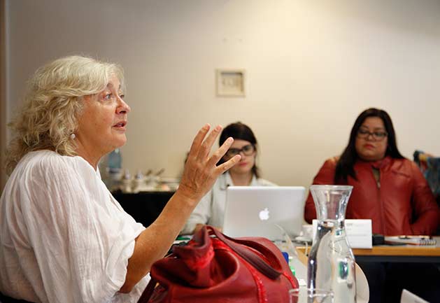 periodista chilena y directora del Ciper, abre el debate del taller Mujeres líderes en la sala de