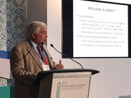Por otra parte, a la luz de la agenda 2030 de las Naciones Unidas se realizó el panel sobre la relación entre el agua y los Objetivos de Desarrollo Sostenible (ODS).En este espacio, también organizado por la IWRA, CAF se sumó a la discusión sobre el papel transversal que desempeña el agua en la implementación de los ODS, en una dinámica que favoreció el desarrollo de estrategias y alianzas que permitan contribuir a la consecución de las metas planteadas por los países latinoamericanos en agua y saneamiento. Además de José Carrera, participaron en este panel destacados expertos del sector, como Sergio Campos, jefe de la División de Agua y Saneamiento del Banco Interamericano de Desarrollo (BID); y Aziza Akhmouch, directora del Programa de Gobernanza del Agua de la Organización para la Cooperación y el Desarrollo Económicos (OECD).