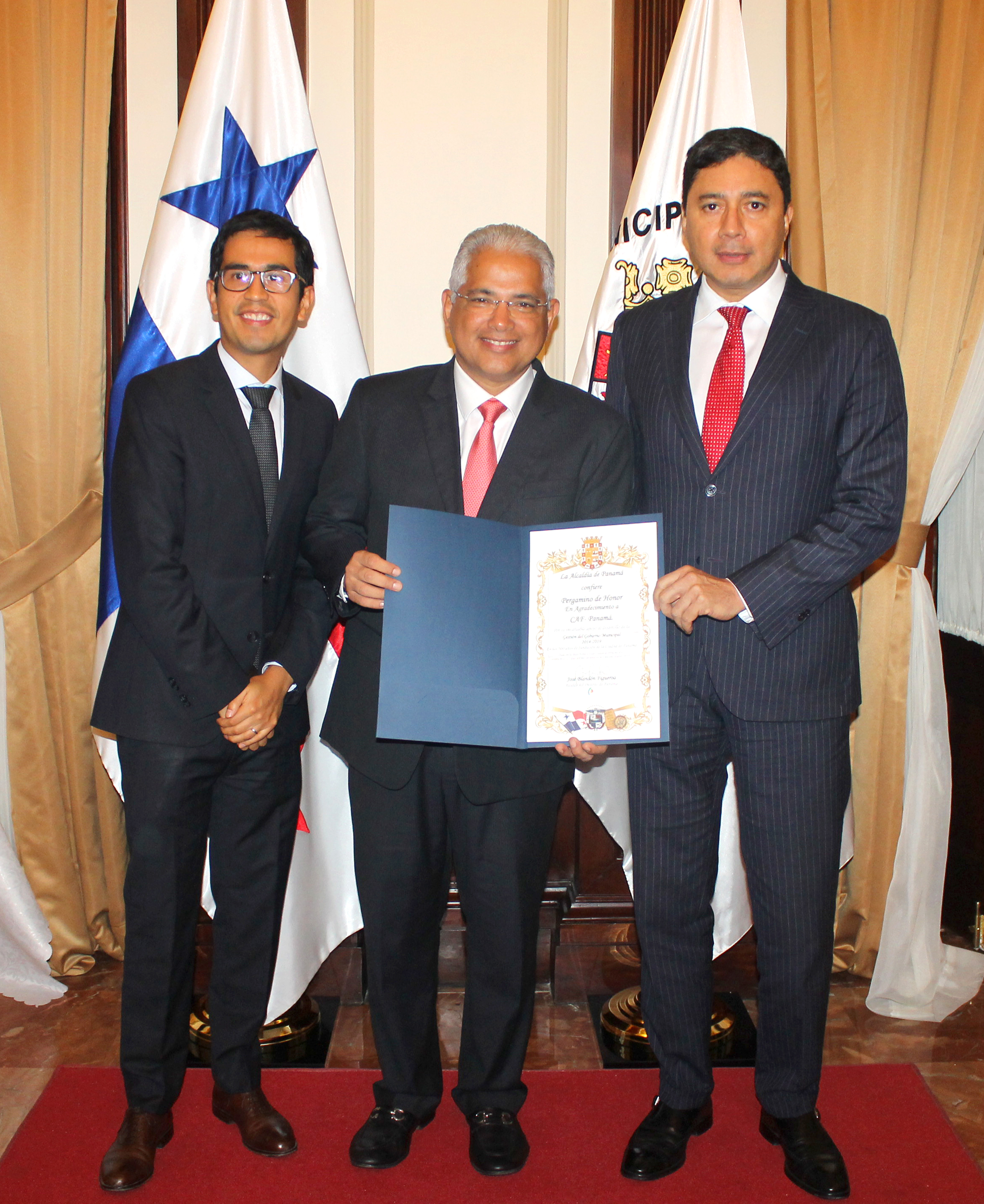 Correspondió a Mauricio Salazar, representante encargado de CAF en Panamá y a Harvey Scorcia, Especialista en Transporte Urbano de la Dirección de Análisis y Evaluación Técnica de Infraestructura recibir el reconocimiento a manos de José Isabel Blandón, Alcalde de la Ciudad de Panamá y Raisa Banfield, Vice Alcaldesa del distrito de Panamá.