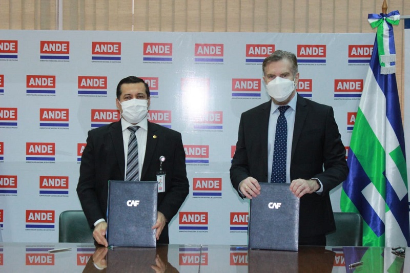 La suscripción del documento estuvo a cargo del presidente de la ANDE, Félix Sosa y del representante de CAF en el Paraguay, Joel Branski.