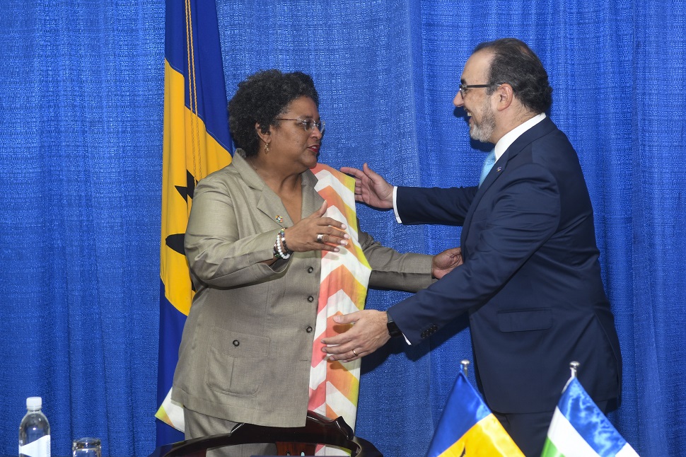 La primera ministra, Mia Amor Mottley, y el presidente ejecutivo de CAF, Sergio Díaz-Granados, firmaron hoy en el Lloyd Erskine Sandiford Centre el convenio de suscripción de acciones de capital ordinario para avanzar en la capitalización de USD $7.000 millones aprobada por la Asamblea de Accionistas en marzo de 2022.