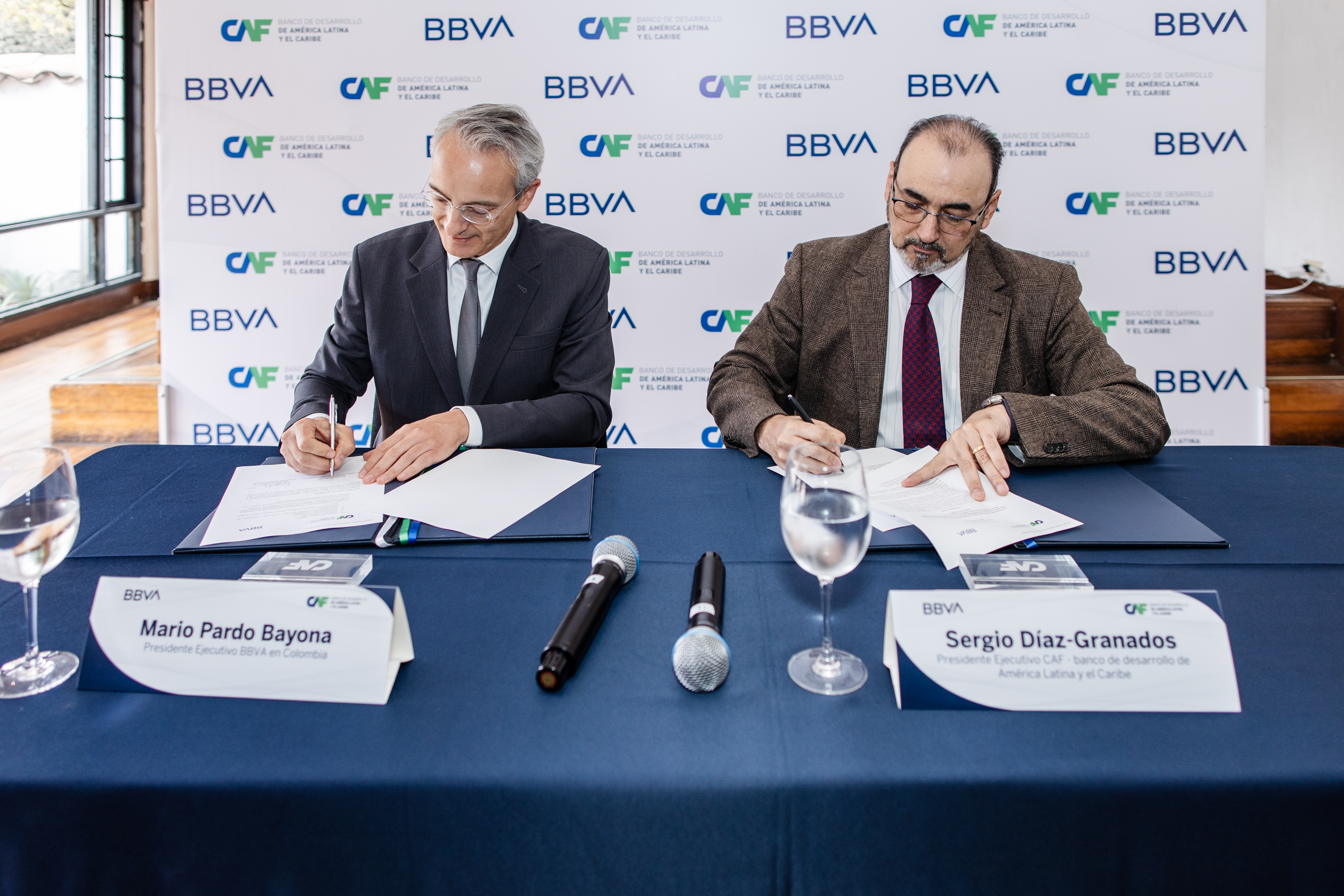 El presidente de BBVA en Colombia, Mario Pardo, y el presidente ejecutivo de CAF, Sergio Díaz-Granados, firmaron un acuerdo para conservar y restaurar los ecosistemas estratégicos de Colombia y apoyar a la población que los habita para que hagan un uso sostenible de sus recursos naturales y se beneficien de sus servicios ecosistémicos.