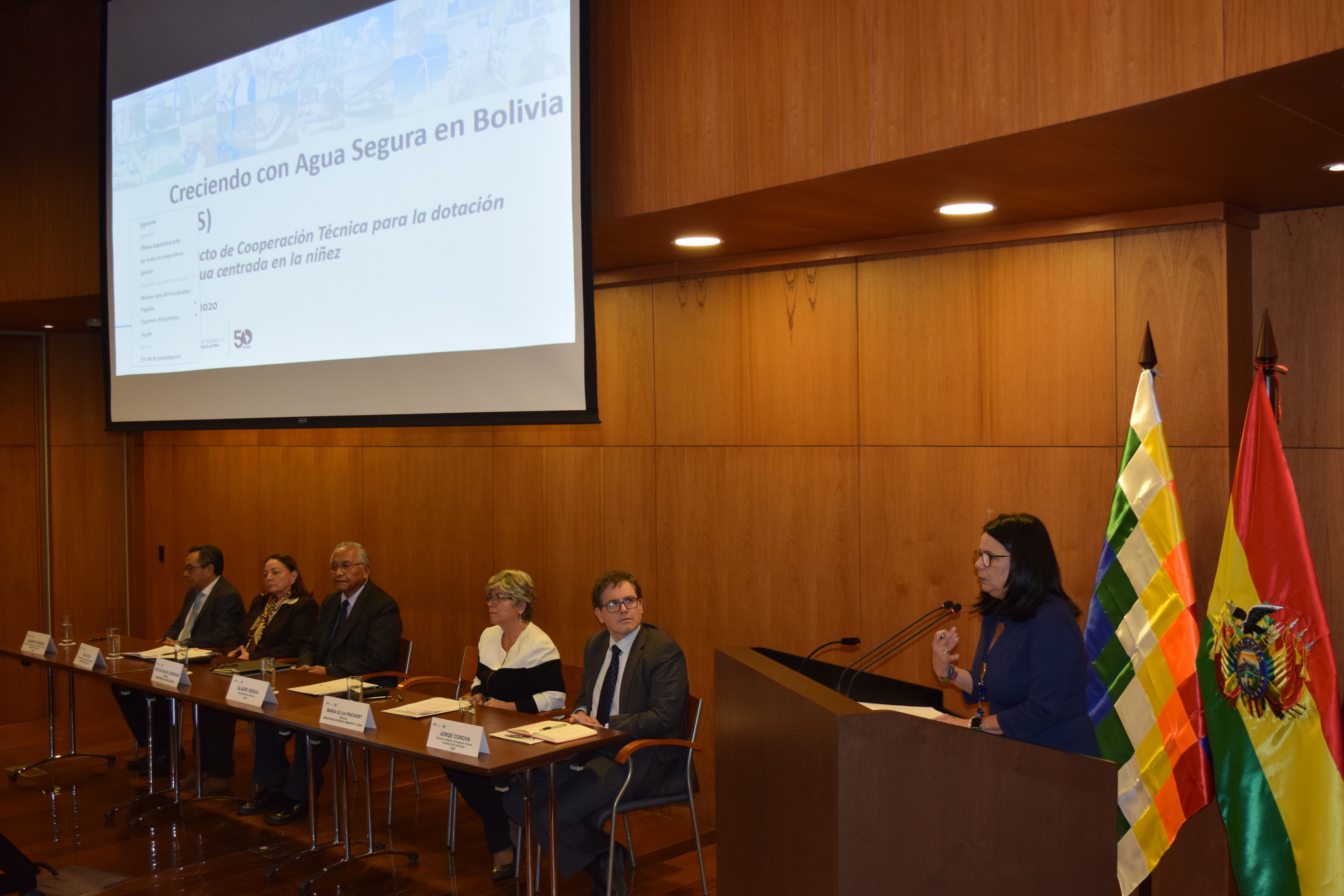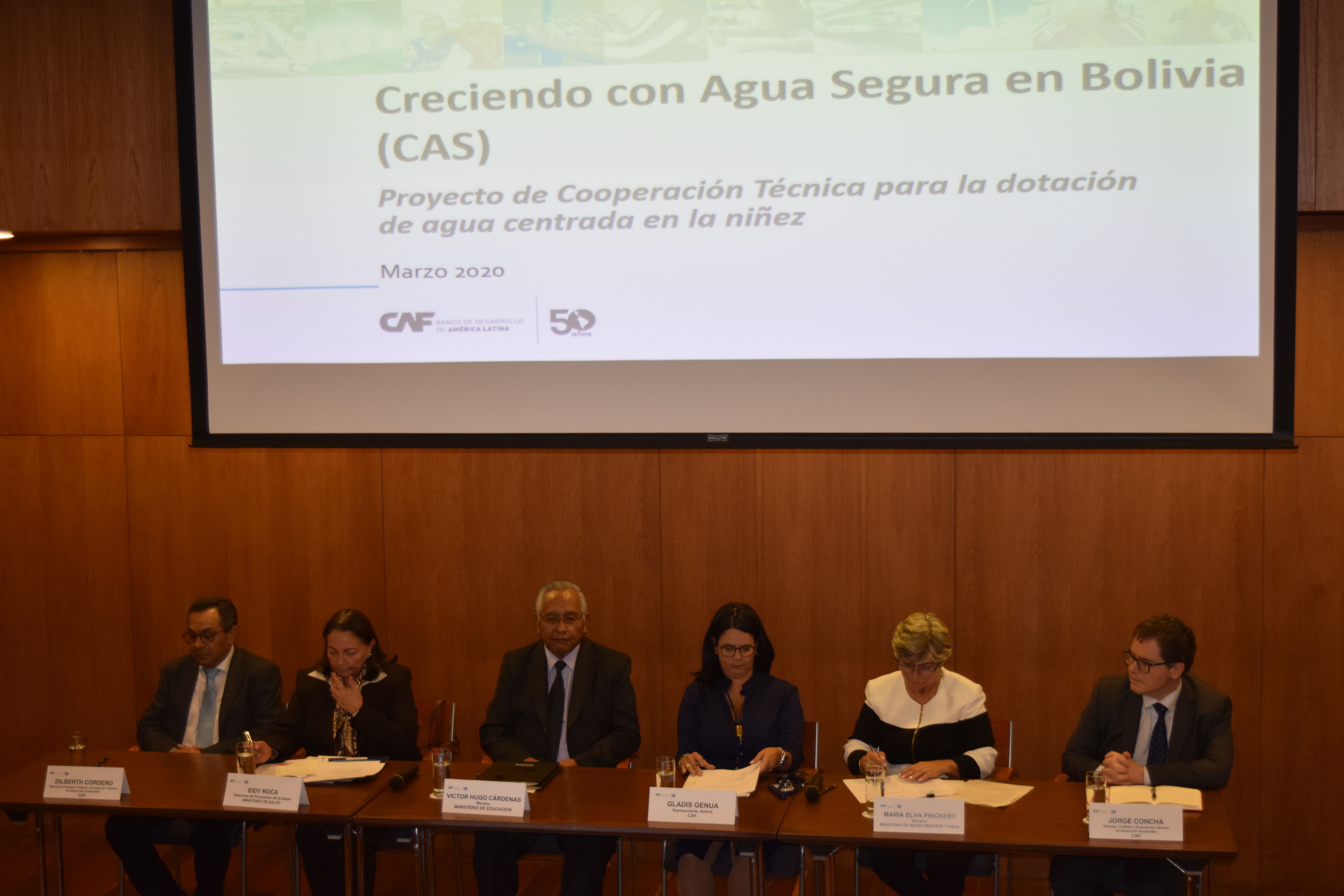 El proyecto, que se presentó este miércoles 11 de marzo contó con la participación de los Ministros de Medioambiente y Agua, Salud, Educación, María Elva Pinckert y Víctor Hugo Cárdenas respectivamente, y representantes de agencias del Sistema de Naciones Unidas (UNICEF y OPS/OMS) como aliados estratégicos. Por parte de CAF asistieron la representante de CAF en Bolivia, Gladis Genua, y los expertos de la Dirección de Análisis y Evaluación Técnica de Desarrollo Sostenible, Jorge Concha y Dilberth Cordero.