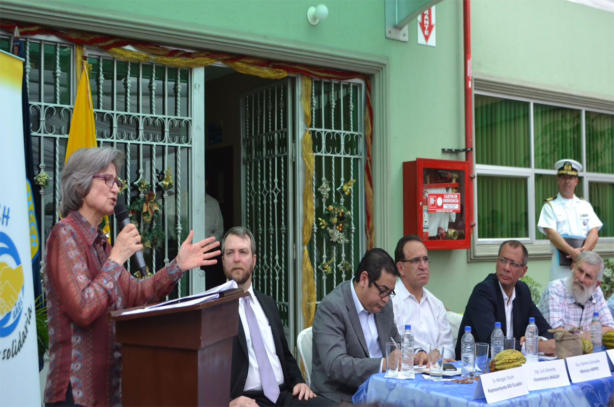 Ana Mercedes Botero, directora de Innovación Social de la CAF, resaltó la importancia que significa el cambio de exportación de materia prima a exportación de productos con valor agregado y desarrollo de nuevos productos derivados del cacao, que a su vez contribuyen con mejorar las condiciones de vida de todos los implicados en la cadena de valor del cacao y sus comunidades.