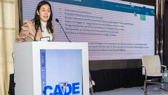 Lucía Meza, directora de proyectos de infraestructura y logística de CAF, destacó en su exposición las virtudes de las asociaciones público-privadas para aumentar y optimizar las inversiones y convertir al canal y su hinterland en una plataforma logística de clase mundial.