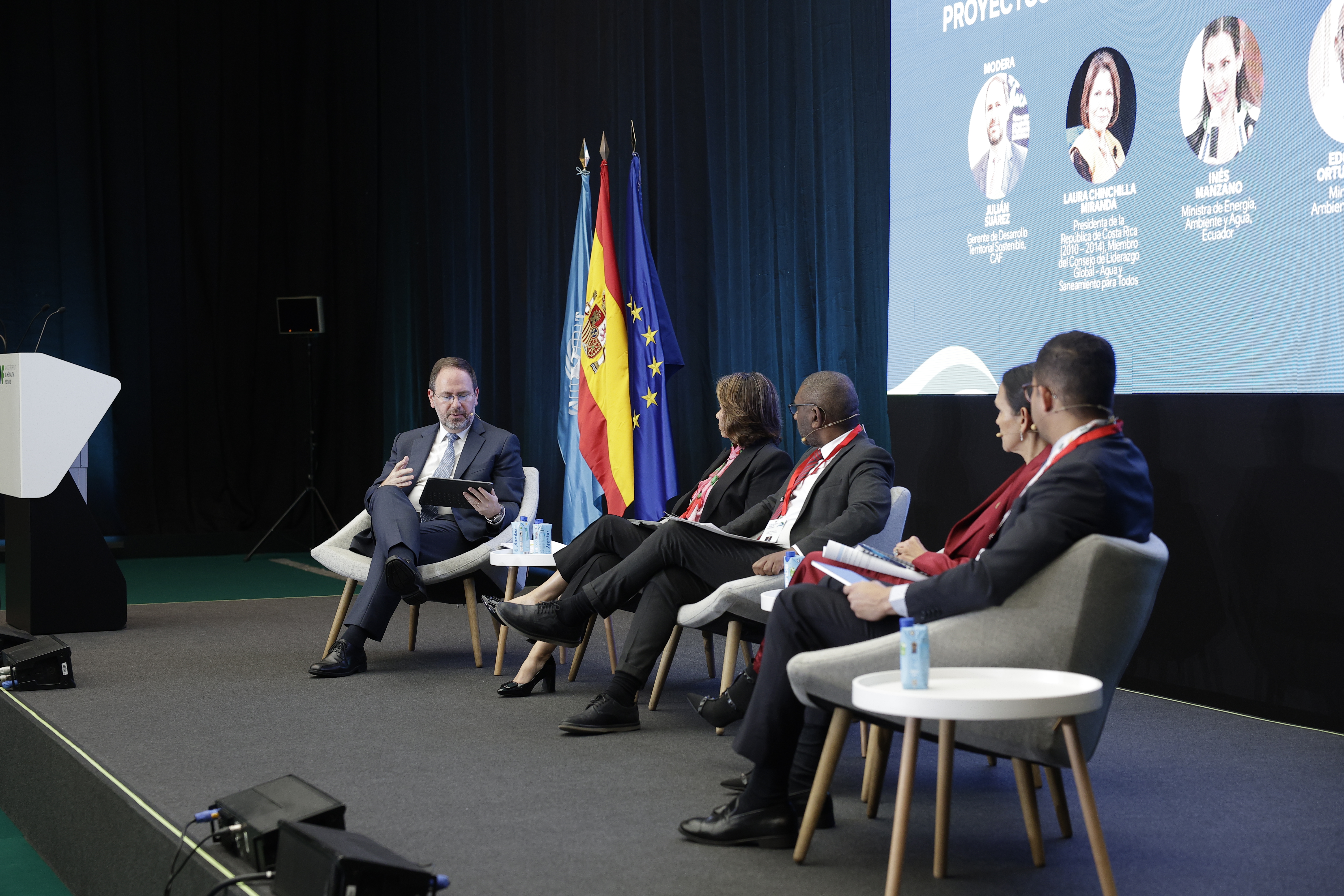 El segundo bloque de los Diálogos; moderado por Julián Suárez Migliozzi, gerente de Desarrollo Territorial en CAF; que estuvo dedicado a los proyectos multipropósito e integración regional, contó con la participación de Laura Chinchilla, expresidenta de Costa Rica; Inés Manzano, ministra de Energía y Ambiente de Ecuador; Giuseppe Serra, secretario nacional de Seguridad Hídrica de Brasil; y Edgardo Ortuño, ministro de Ambiente de Uruguay. Todos coincidieron en que la seguridad hídrica puede ser una palanca de cooperación regional y es un catalizador de nuevas inversiones verdes.