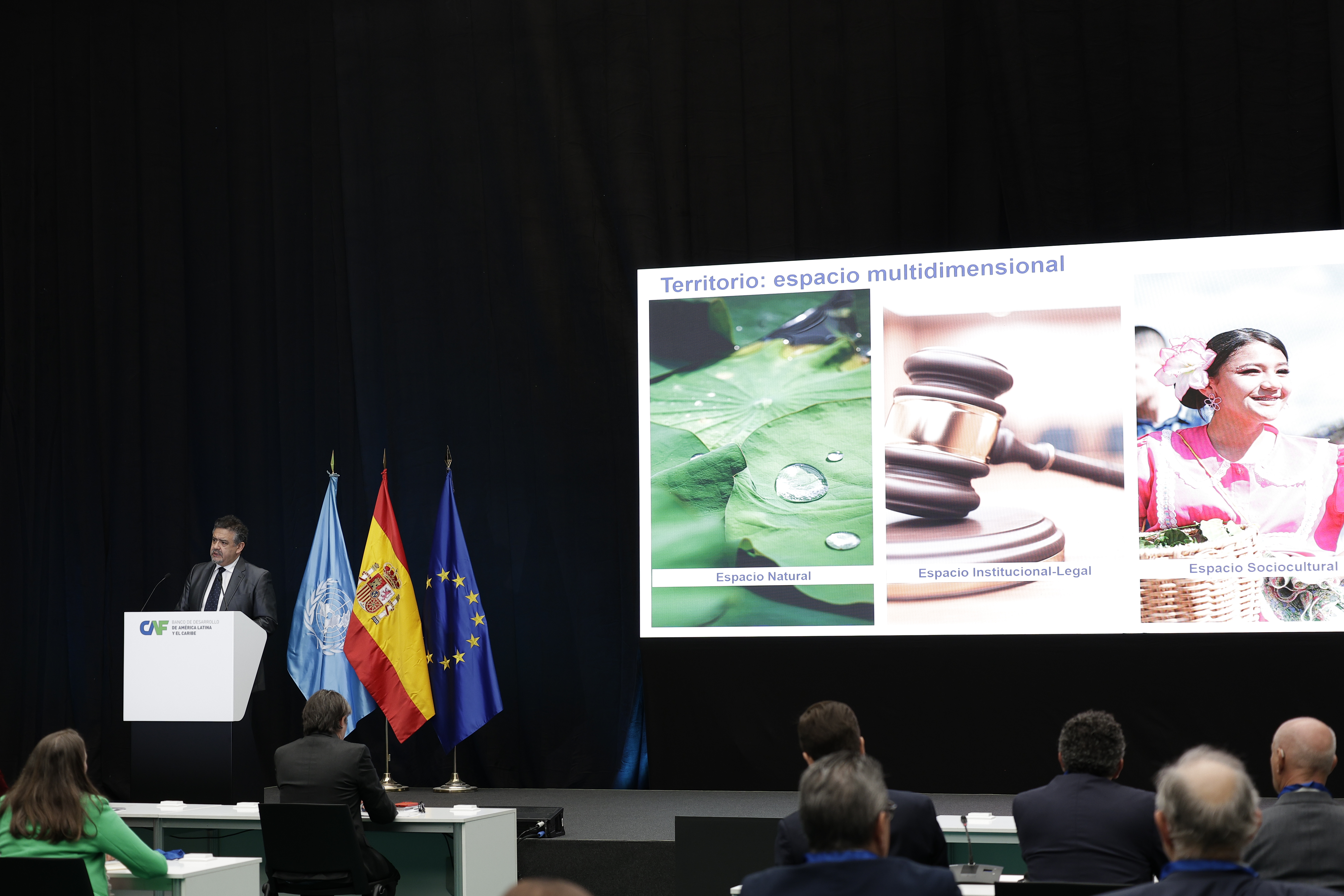 Rojas insistió en la necesidad de integrar la seguridad hídrica en la planificación territorial: “El agua debe ser vista como eje articulador del territorio, que da viabilidad al crecimiento urbano; como motor de desarrollo económico para la industria y la agricultura, incluso para la energía, esta última fundamental en la región, toda vez que entre el 45% y 55% de la electricidad generada proviene de hidroeléctricas; además, es esencial para promover la cohesión social, también la resiliencia hídrica, así como en la reducción de la contaminación y la integración regional, habida cuenta de las 70 cuencas transfronterizas. Brindó ejemplos de proyectos que CAF apoya según dichas categorías. Concluyó señalando que el 90% de la población mundial vive a menos de 10 km de una fuente de agua dulce, que orienta la importancia del agua en la vida. .
