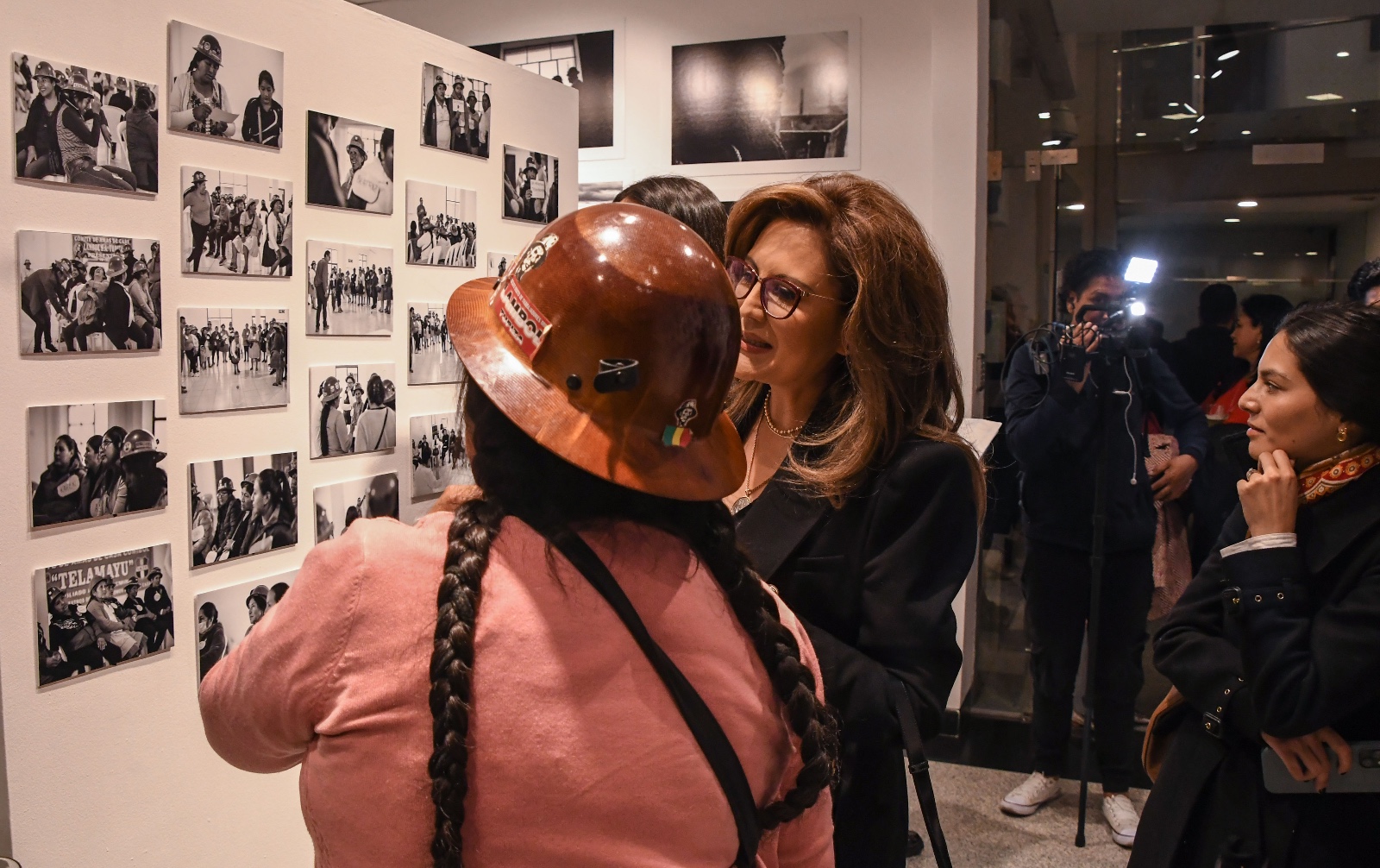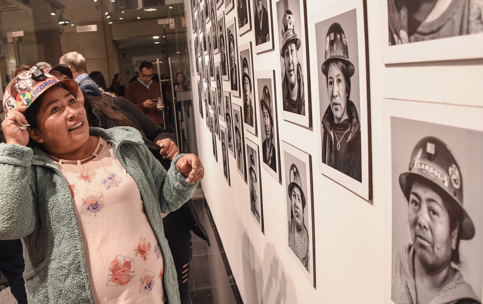 "Mediante esta muestra fotográfica que recoge testimonio de sus rostros, entornos y vivencias, queremos expresar que estamos ampliamente satisfechos con los logros personales y colectivos que estas 105 mujeres mineras han tenido, reafirmando que cada una posee en sí misma la fuerza y valor para ser líder formadora y transformadora de su vida", remarcó Alejandra Claros, secretaria General de CAF, quien estuvo en la inauguración.