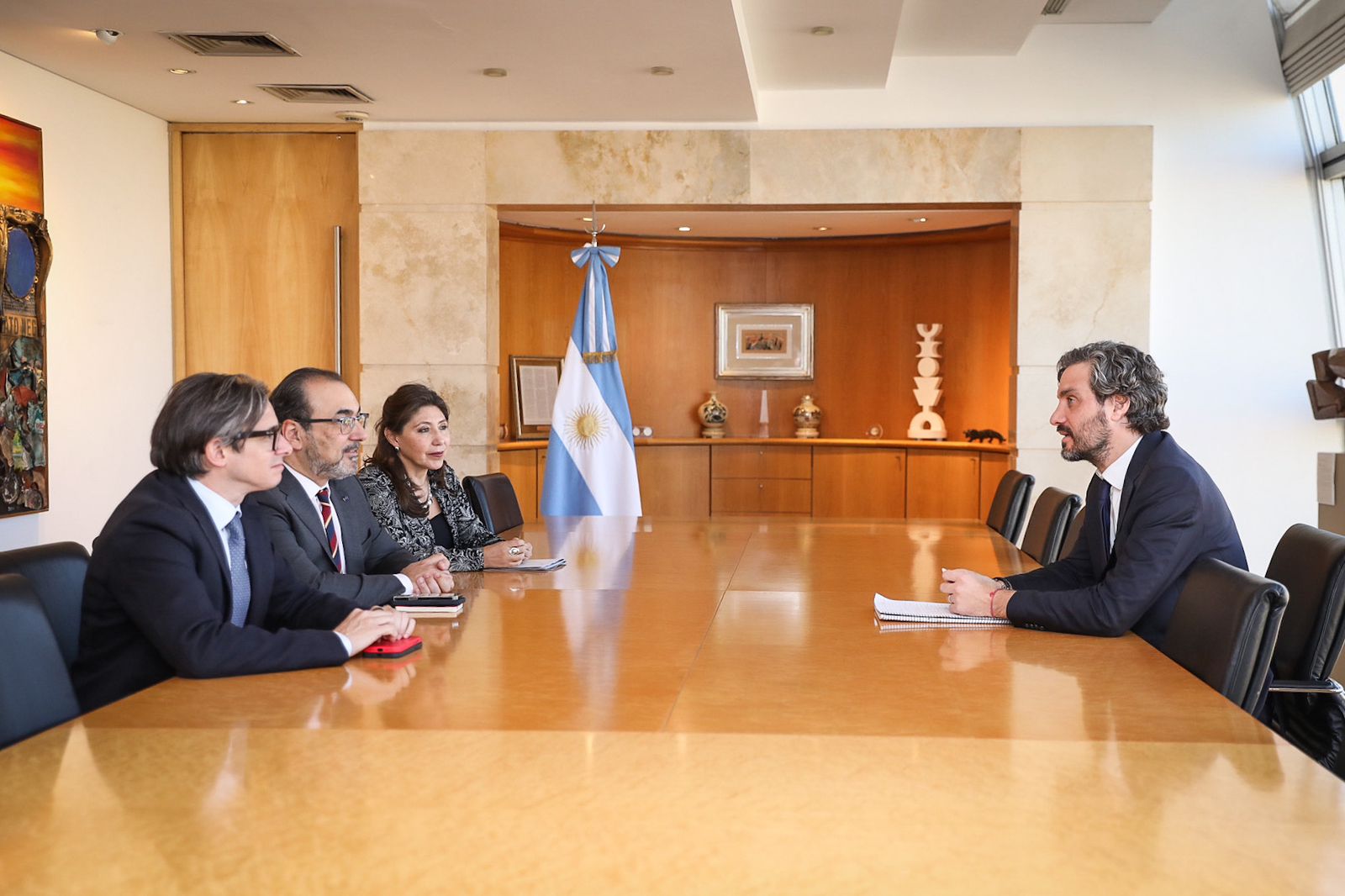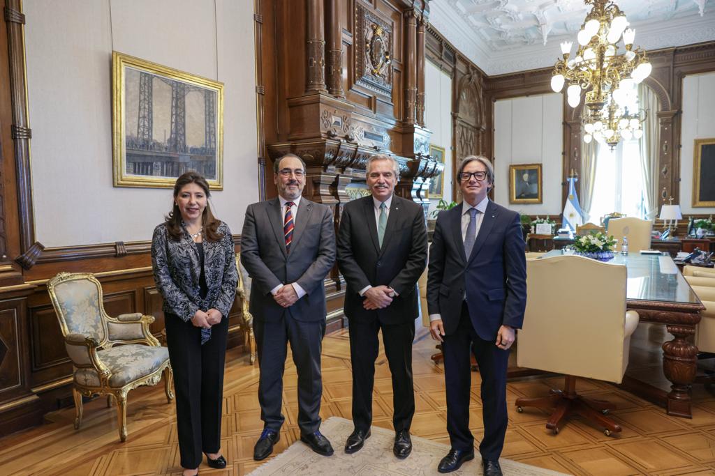 En su visita a la ciudad de Buenos Aires, el presidente ejecutivo de CAF - banco de desarrollo de América Latina, Sergio Díaz Granados, se reunió con el presidente Alberto Fernández, el canciller Santiago Cafiero y el ministro de Economía Sergio Massa, con quienes dialogó sobre los múltiples proyectos que el organismo financia en el país y la participación del banco en la próxima cumbre del Mercosur, en la que Argentina pasará la presidencia pro témpore a Brasil. En el encuentro, también estuvieron presentes el vicepresidente corporativo de Programación Estratégica de CAF, Christian Asinelli, y la representante de CAF en Argentina, Patricia Alborta.