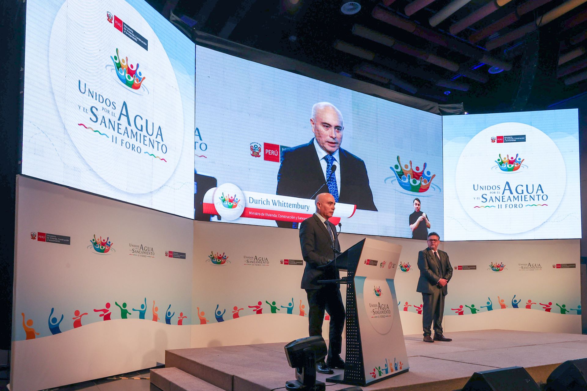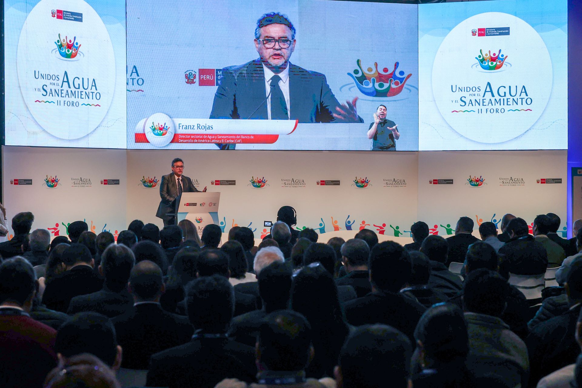 Durante la inauguración del 'II Foro Unidos por el Agua y el Saneamiento', organizado por el Ministerio de Vivienda, Construcción y Saneamiento de Perú, Franz Rojas, director de análisis de Agua y Saneamiento de CAF -banco de desarrollo de América Latina y el Caribe, inauguró el evento junto a Durich Whittembury, ministro de Vivienda, Construcción y Saneamiento de Perú, y además participó en el panel de alto nivel de la Ley de Acceso Universal al agua, cuyo expositor principal fue Max Carbajal, director general de Políticas y Regulación en Construcción y Saneamiento del Ministerio de Vivienda, Construcción y Saneamiento (MVCS).