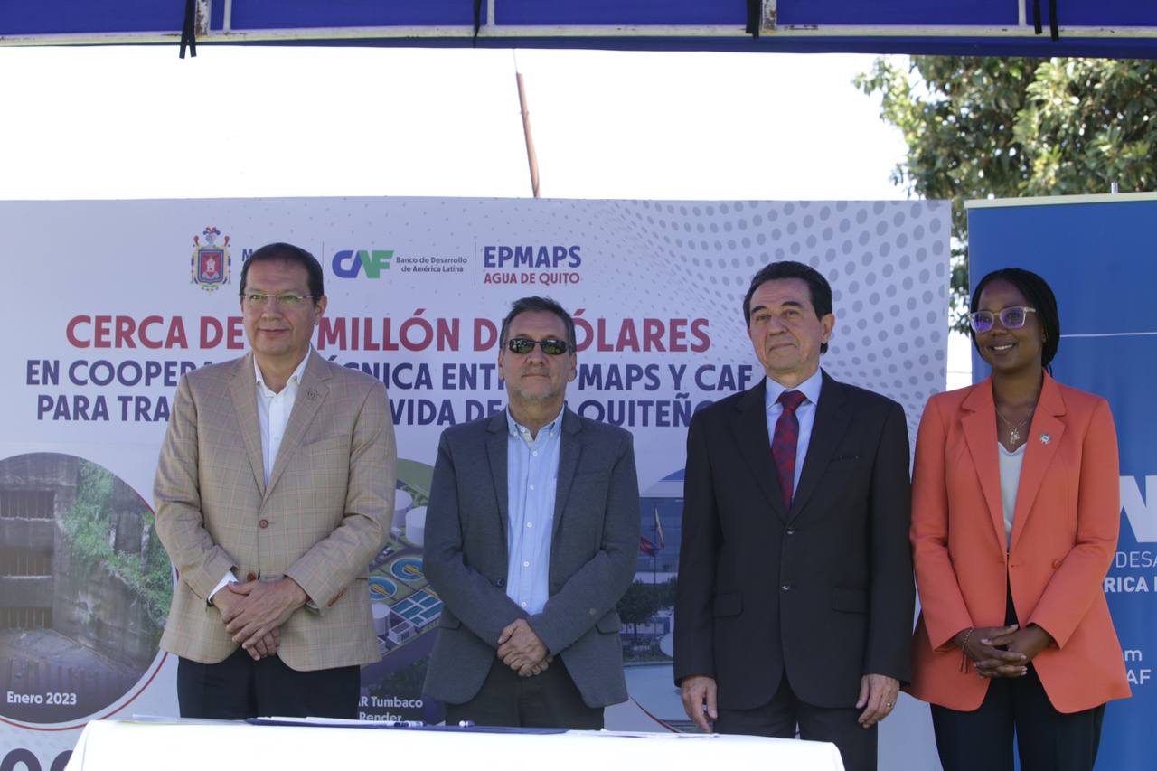 Susana Edjang, representante de CAF en Ecuador, explicó que la estrategia de agua del organismo multilateral se orienta hacia la gestión integral de los recursos hídricos, que comprende varios objetivos, como promover el acceso seguro al agua potable y el saneamiento de toda la población. “Como aliados del desarrollo de Ecuador y, en este caso, de Quito, buscamos financiar proyectos que de verdad aporten al mejoramiento de las condiciones de vida de su gente y que aseguren un acceso eficiente a los servicios de agua y saneamiento”, dijo Edjang.