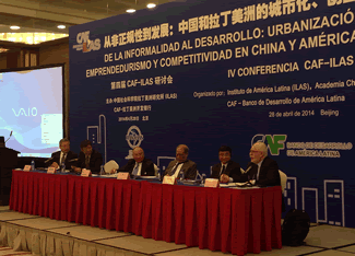 (Pekín, 29 de abril de 2014). De la informalidad al desarrollo: urbanización, emprendedurismo y competitividad en China y América Latina fue el tema central de la IV Conferencia CAF-ILAS, celebrada el día 28 de abril en Pekín, en el marco de la cual Enrique García, presidente ejecutivo de CAF -banco de desarrollo de América Latina- destacó la necesidad de avanzar en la profundización de la relación estratégica entre China y América Latina "sobre la base de una agenda común de largo plazo que sea dinámica y equilibrada".