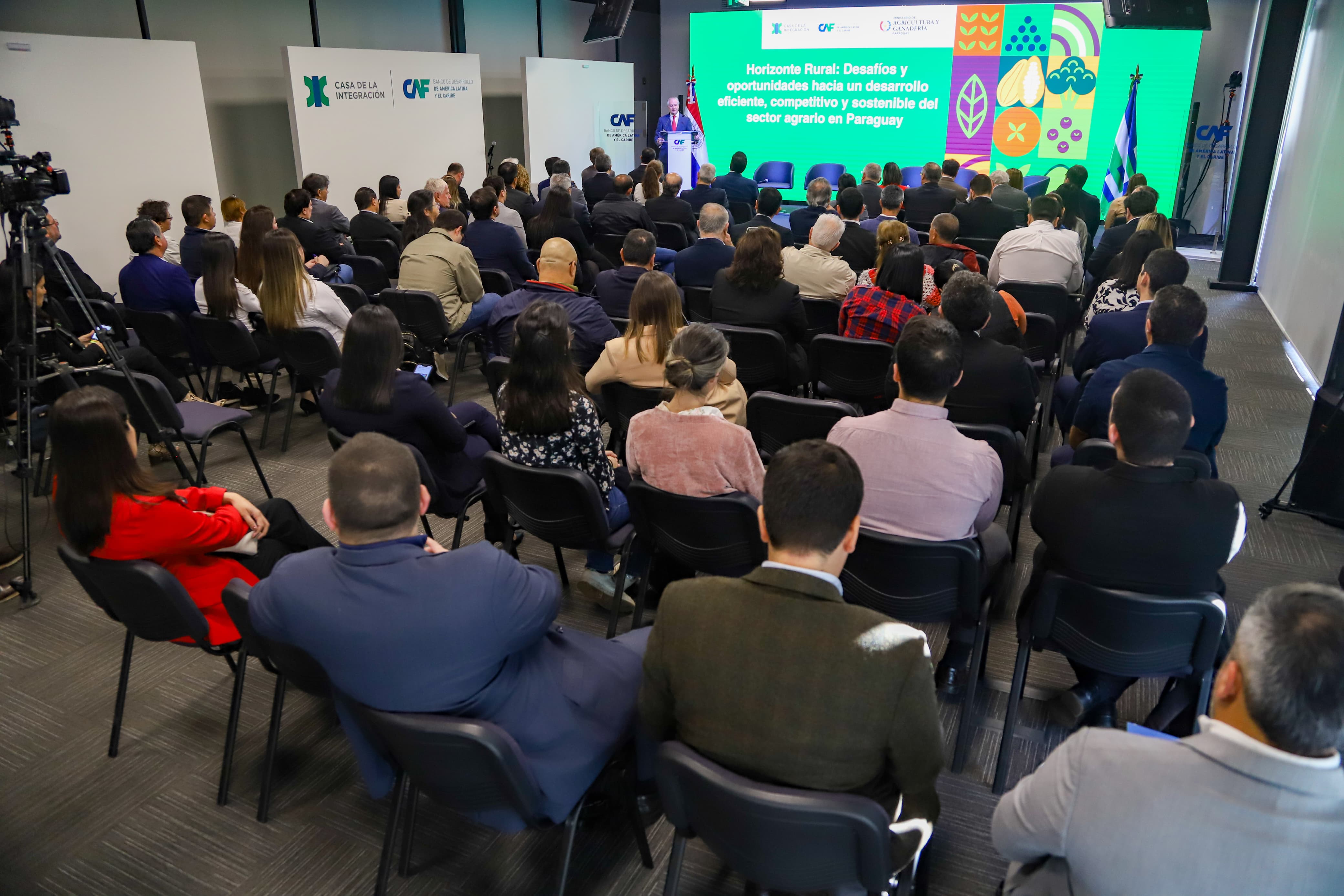 CAF -banco de desarrollo de América Latina y el Caribe- y el Ministerio de Agricultura y Ganadería reunieron a líderes del sector público, privado y organismos internacionales para dialogar sobre los desafíos y oportunidades del sector agrario en Paraguay.