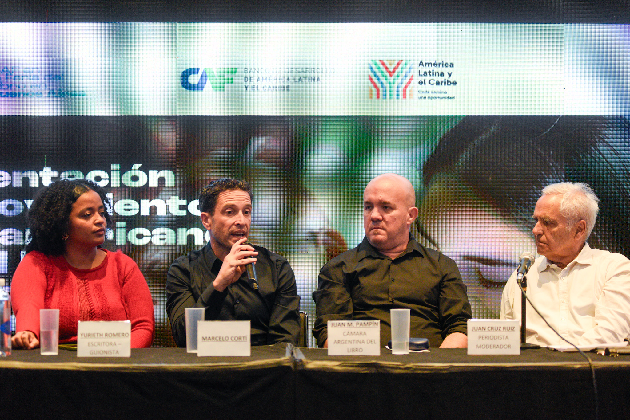 El panel de especialistas, moderado por el periodista y escritor Juan Cruz Ruiz, reunió diversas perspectivas sobre cómo construir políticas públicas efectivas para el sector del libro y la lectura. Participaron Sandra Rodriguez, Coordinadora del área de Cooperación e Innovación de la OEI, Oficina Nacional en Argentina; Juan Manuel Pampín, Presidente de la Cámara Argentina del Libro y de ediciones Corregidor; Marcelo Cortí, Director Ejecutivo del Centro de Desarrollo Sustentable GEO de la Facultad de Ciencias Económicas (UBA), Yurieth Romero, escritora y cineasta colombiana, Directora de La Caracola Films y Silvia Almazán, Secretaria adjunta de Sindicato Unificado de Trabajadores de la Educación de Buenos Aires - SUTEBA - .