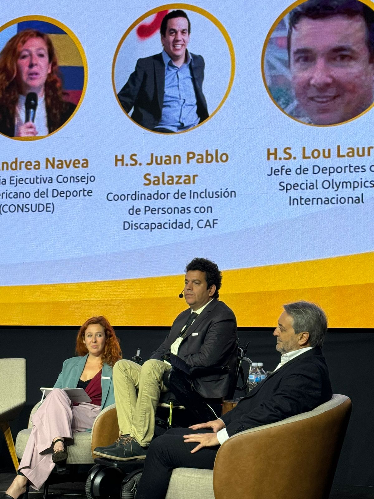 Juan Pablo Salazar, Coordinador de Inclusión de Personas con Discapacidad de CAF, participó en una sesión dedicada a la importancia de los datos e investigación para fortalecer políticas públicas e inversiones en el ámbito deportivo.