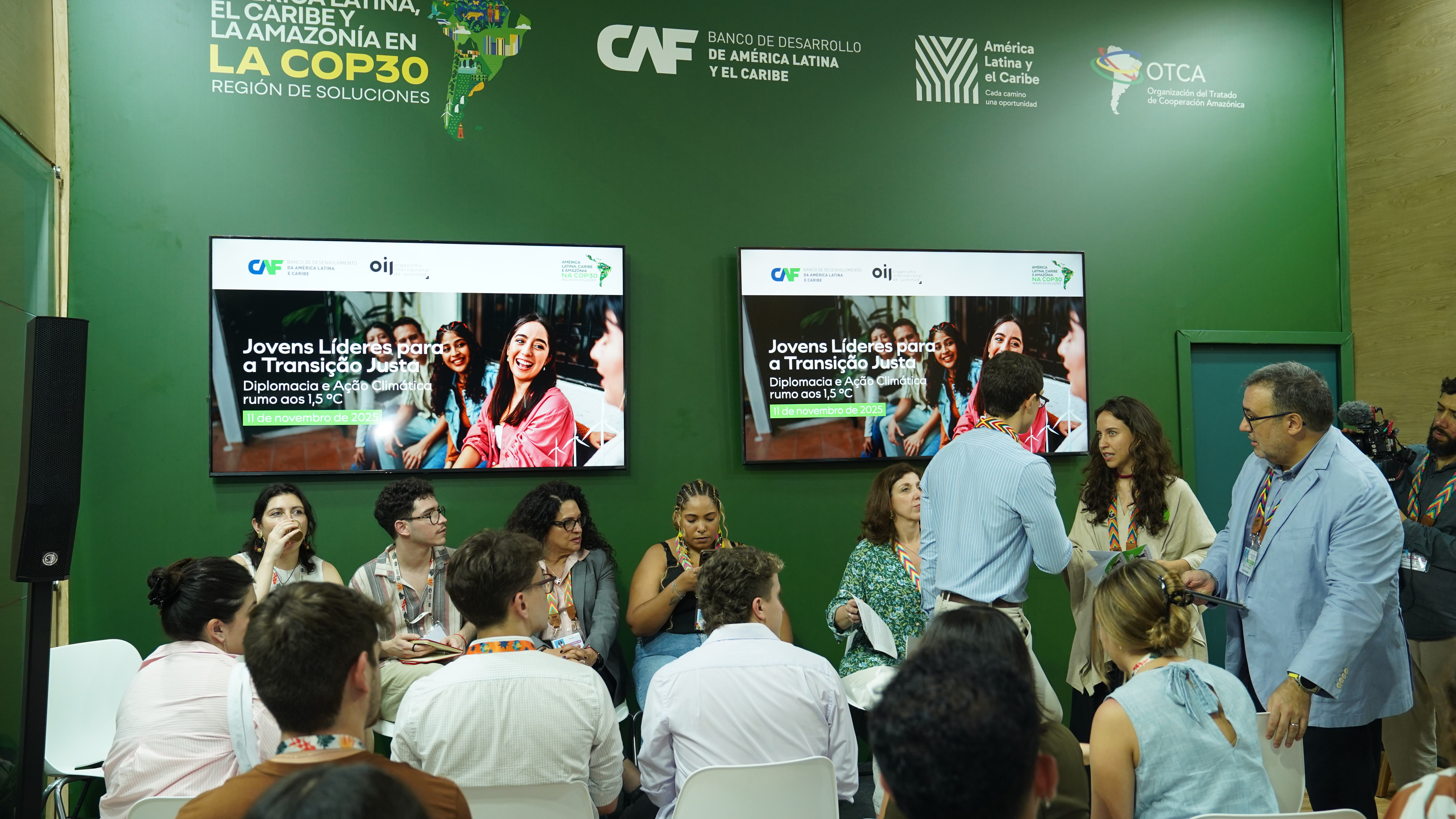 Como parte de su agenda en la COP30, CAF –banco de desarrollo de América Latina y el Caribe– realizó dos actividades dirigidas a fortalecer el liderazgo, la formación diplomática y la capacidad de incidencia de jóvenes de la región en los procesos climáticos multilaterales. Ambas iniciativas se desarrollaron en alianza con el Organismo Internacional de Juventud para Iberoamérica (OIJ) y organizaciones juveniles ambientalistas aliadas a la iniciativa “COP30 en Comunidad”.