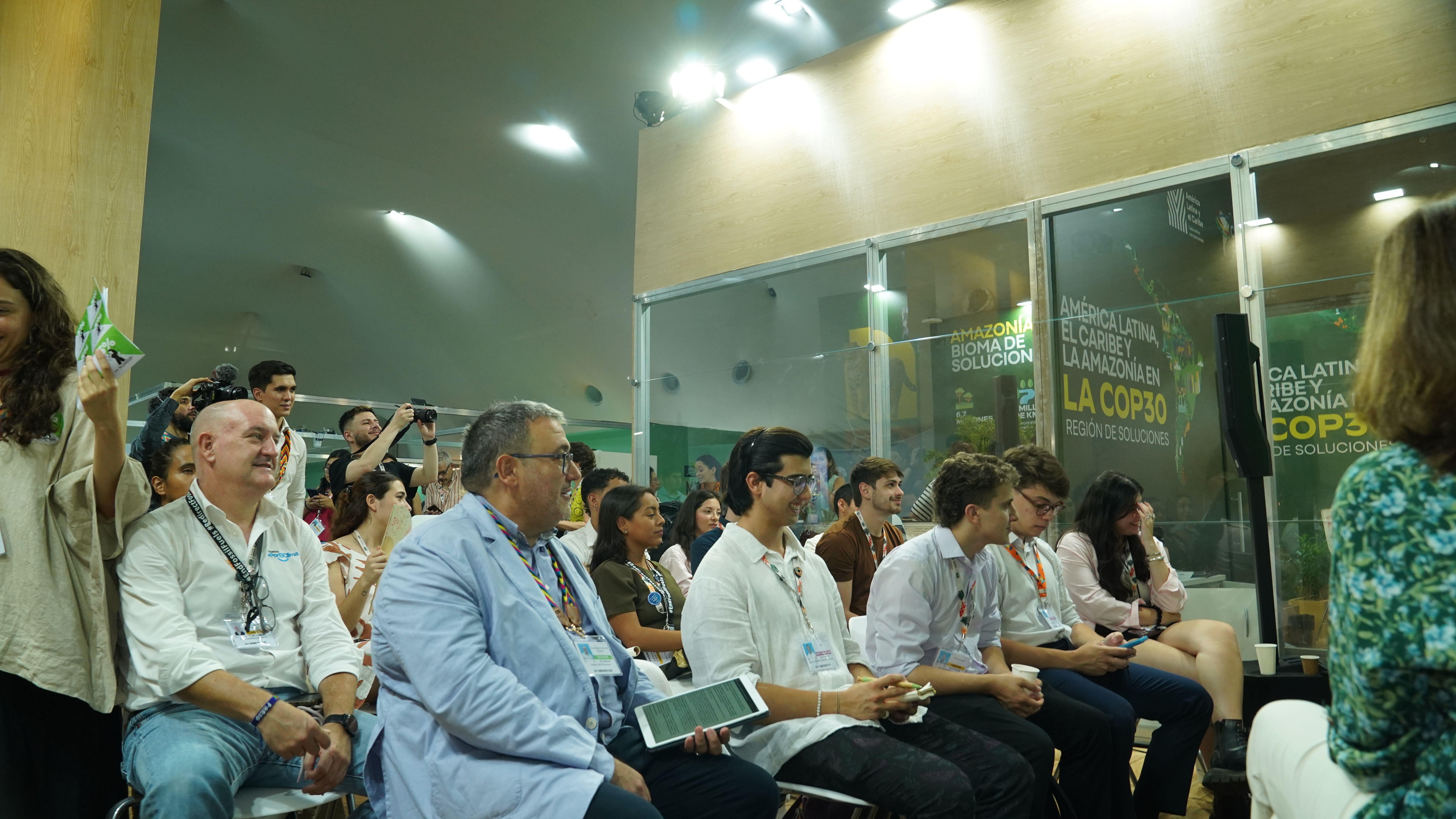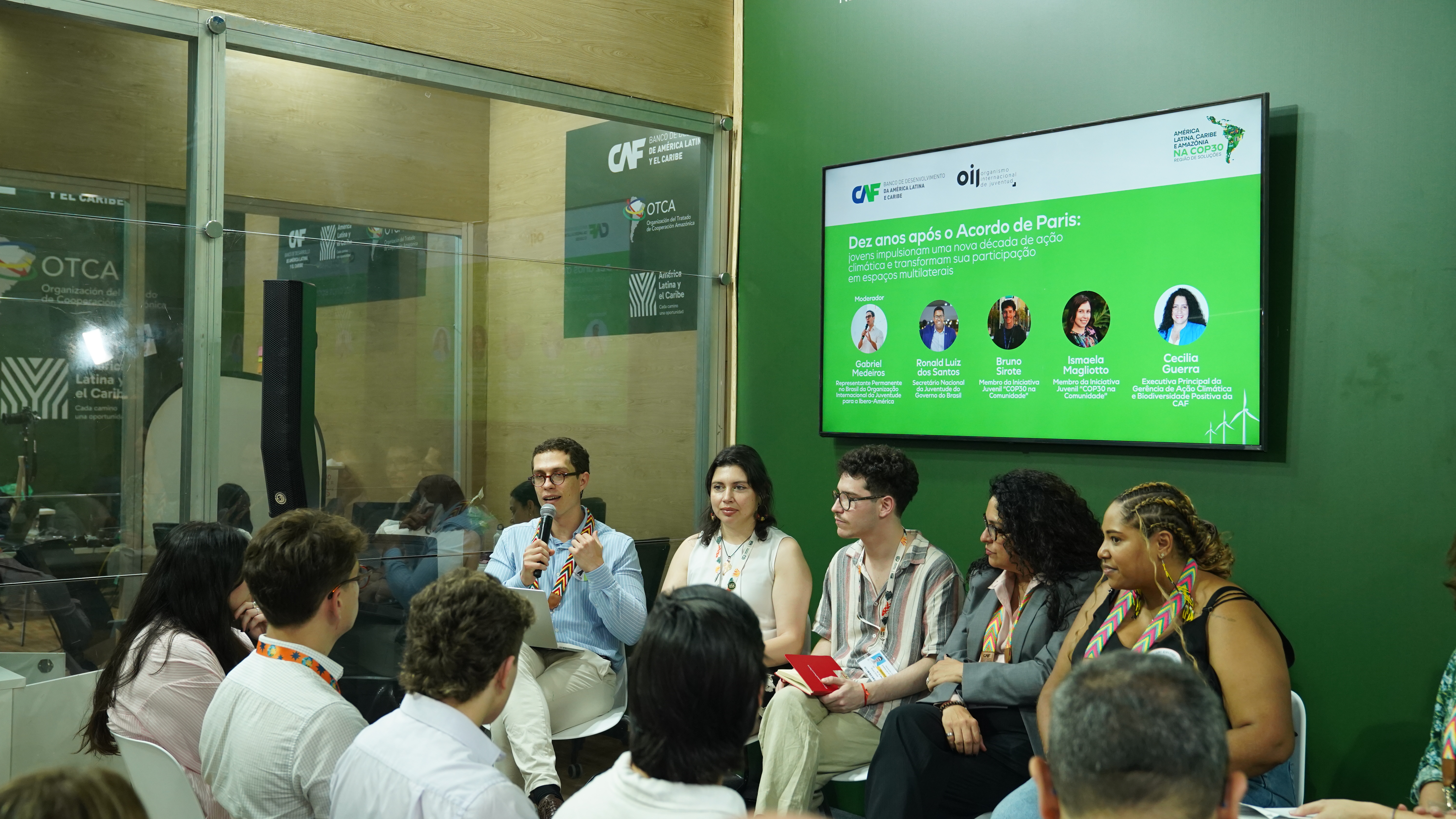 Participaron Guilherme Barbosa, sub- Secretario Nacional de Juventud del Gobierno de Brasil; Marcelle Oliveira, Presidency Youth Climate Champion para la COP30; Alexandre Pupo y Pedro Duval, Secretario general y Subsecretario general de OIJ. Christian Asinelli, vicepresidente coporativo de Programación Estratégica de CAF, destacó durante el diálogo la necesidad de canalizar recursos climáticos internacionales hacia proyectos juveniles, y la necesidad que tienen América Latina y el Caribe de soluciones concretas que incorporen la voz de las juventudes en su diseño y gobernanza. Aseguró que “el tiempo para la acción real es hoy”.