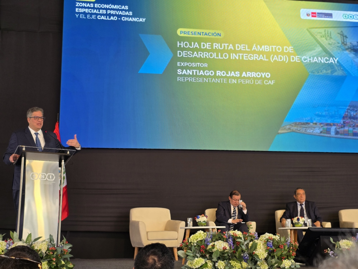CAF – banco de desarrollo de América Latina y el Caribe presentó la Hoja de Ruta del Ámbito de Desarrollo Integral (ADI) de Chancay, una propuesta de planificación estratégica diseñada paraimpulsar el desarrollo del Hub Chancay-Callao. Este hito posiciona al país en un punto de inflexión en materia logística, ya que el puerto de Chancay constituye una oportunidad excepcional para continuar impulsando la posición del Perú en el comercio global.