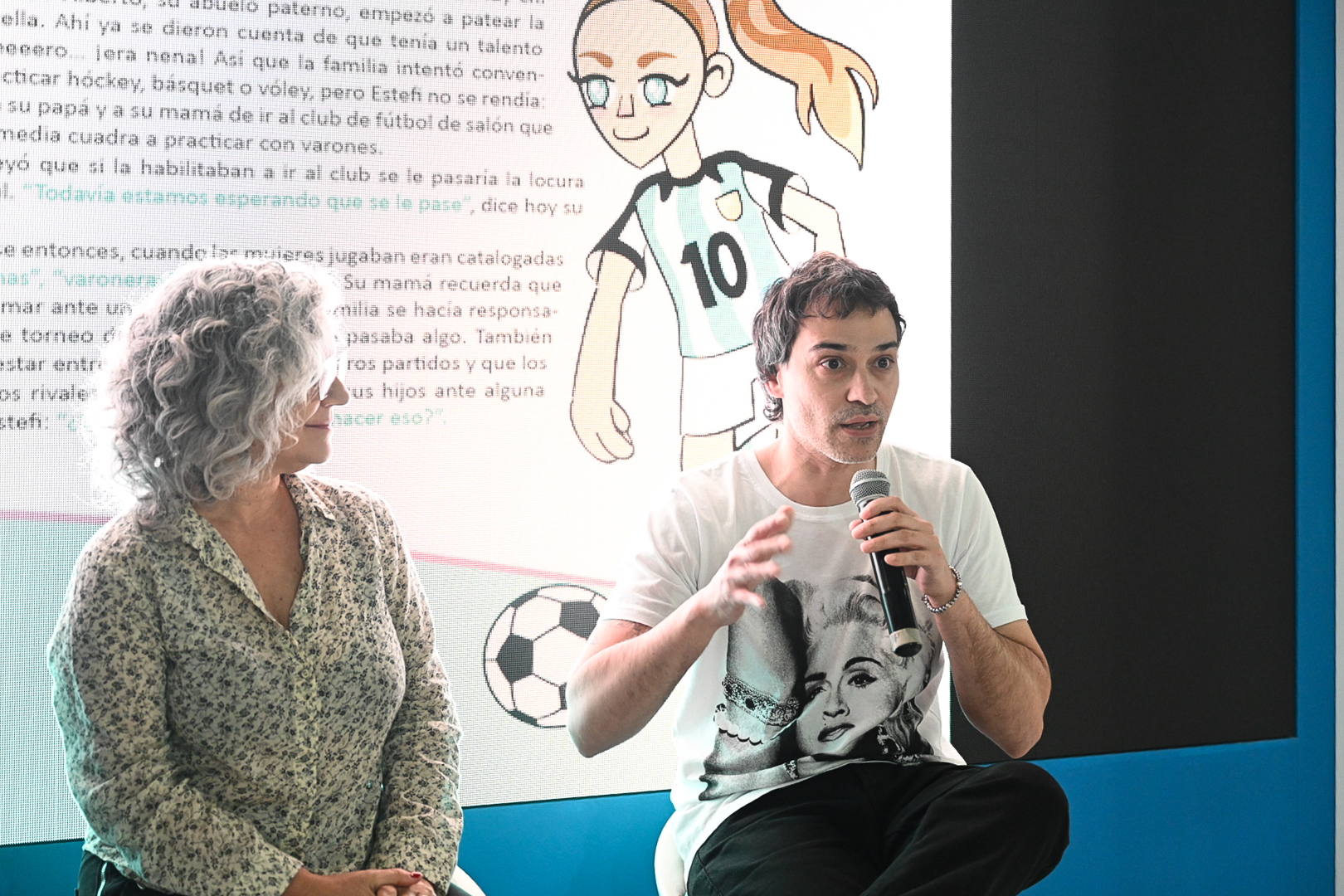 El vicepresidente Corporativo de Programación Estratégica de CAF, Christian Asinelli, moderó un panel con la autora Cecilia Merchán, junto al ilustrador Pitu Saá, donde se presentaron dos publicaciones que buscan reducir las brechas de género en el deporte.