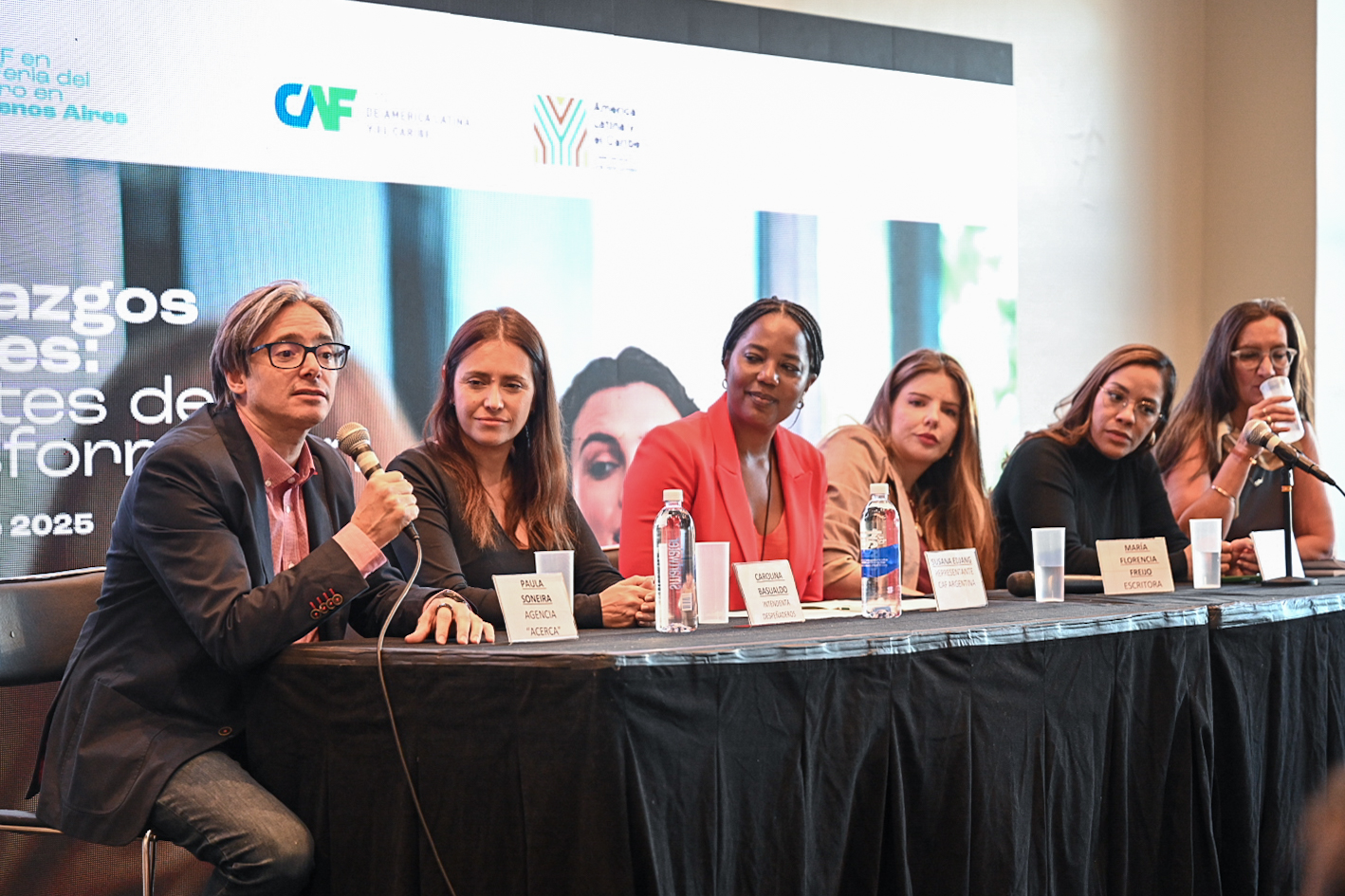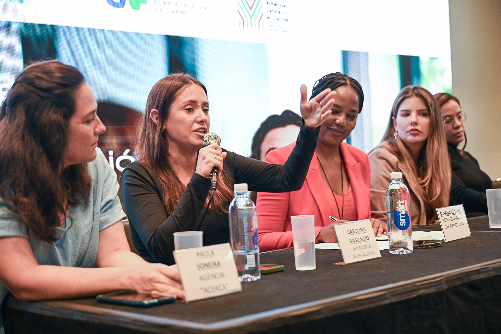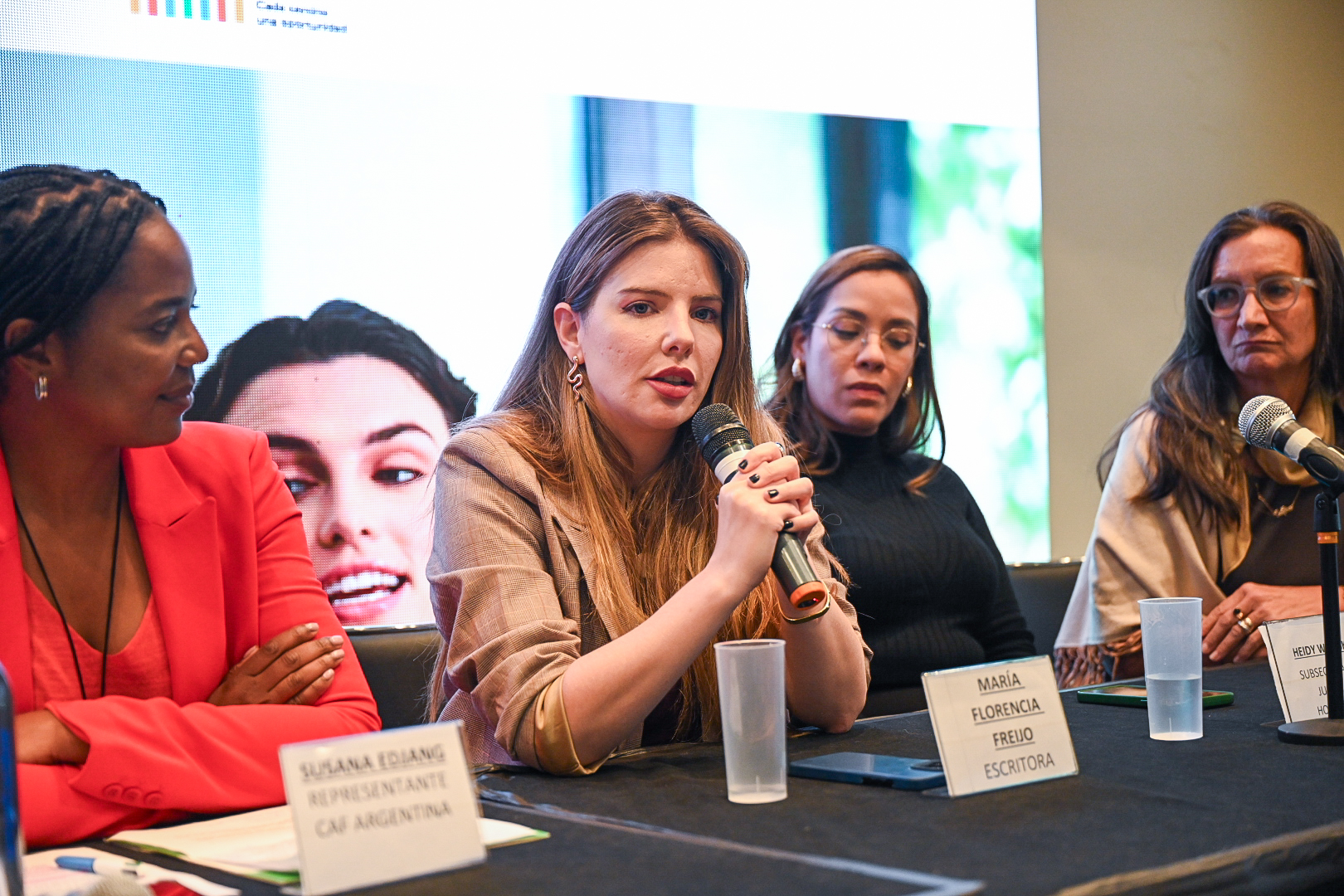 El panel, moderado por Susana Edjang, representante de CAF en Argentina, contó con la participación de destacadas personalidades: María Florencia Freijo, politóloga especializada en perspectiva de género y autora de libros como "Solas (aún acompañadas)", "Mal Educadas" y "Decididas"; Heidy Waleska Barahona Alachán, Subsecretaria de la Secretaría de Gobernación, Justicia y Descentralización de Honduras, abogada con maestría en Derechos Humanos y miembro de la Asociación Nacional de Escritoras de Honduras; Andrea Grobocopatel, empresaria, economista y filántropa argentina, fundadora de la Fundación Flor y Resiliencia SGR, y autora de "Pasión por Hacer" y "Pasión por Reinventarse"; Carolina Basualdo, Intendenta de Despeñaderos (Córdoba), quien preside el Foro de Alcaldes y es representante por América Latina del Pacto Global de Alcaldes por el Clima y la Energía; y Paula Soneira, bióloga y Doctora en Ciencias Naturales, co-fundadora e integrante de la Agencia de Cooperación ACERCA.