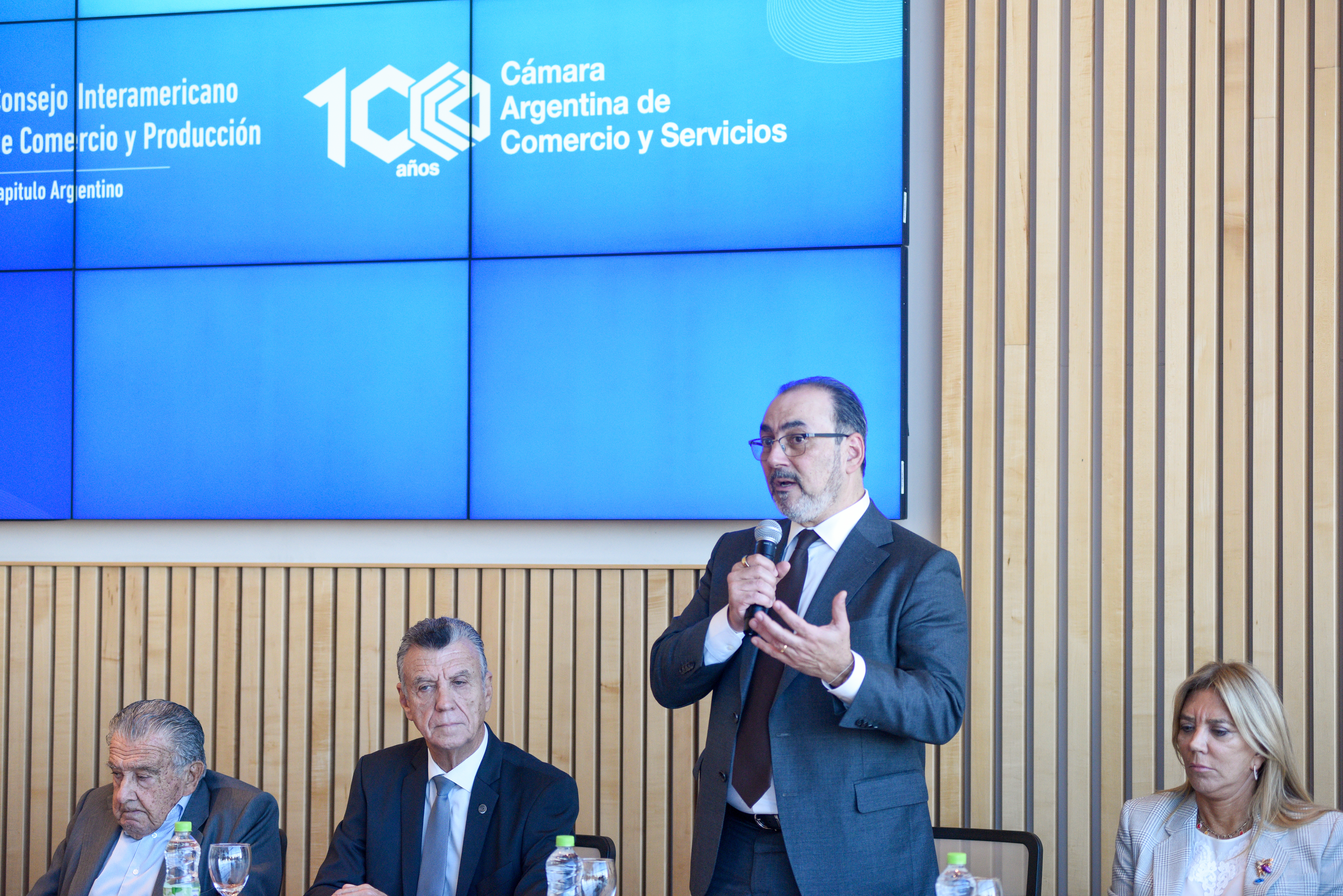 Durante su visita a Buenos Aires, Díaz-Granados participó en dos encuentros estratégicos: un almuerzo empresarial organizado conjuntamente con la Organización de Estados Iberoamericanos (OEI) y un diálogo con el Consejo Interamericano de Comercio y Producción (CICyP) y la Cámara Argentina de Comercio y Servicios (CAC).