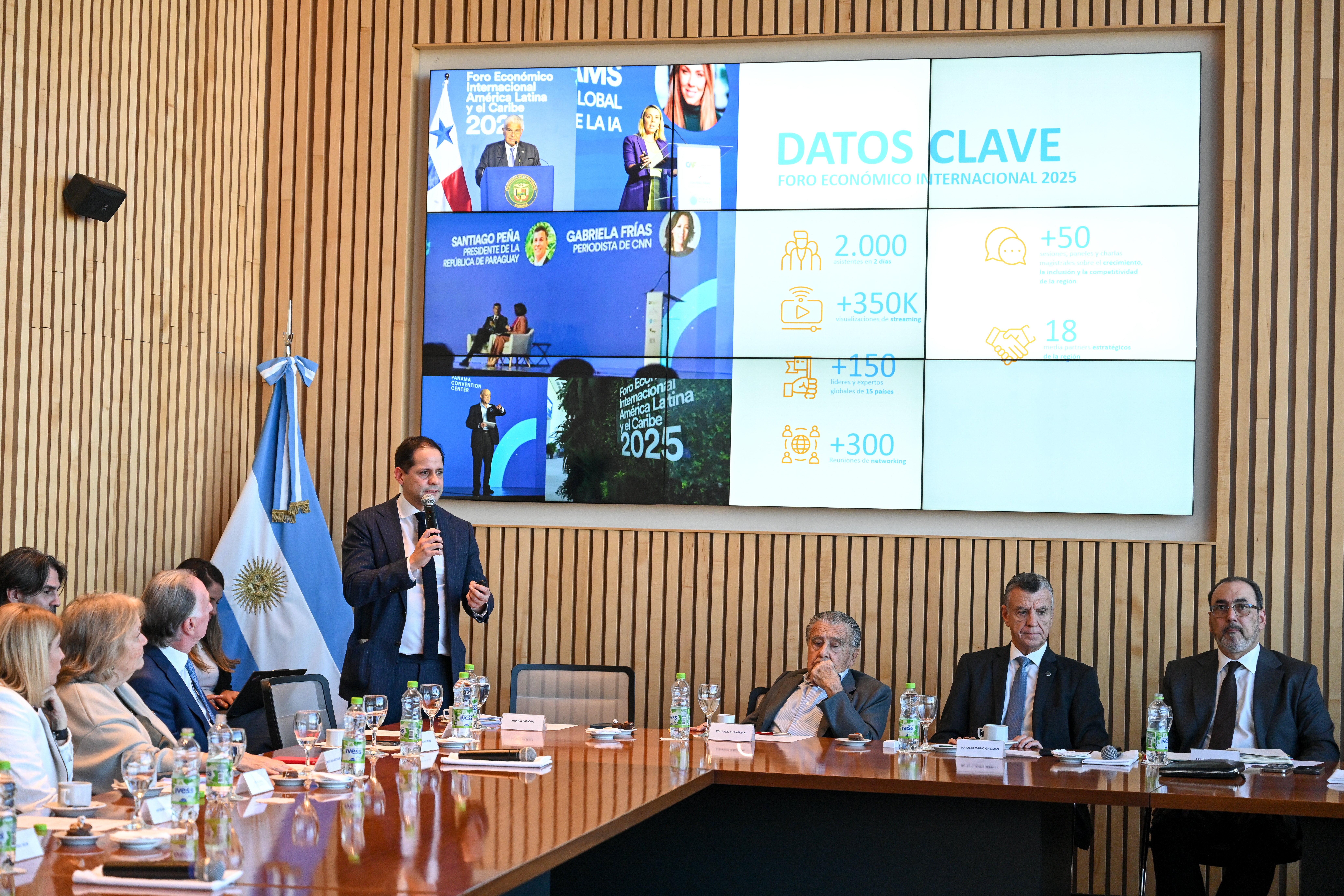 Los encuentros en Buenos Aires también sirvieron para abordar las principales prioridades del sector empresarial argentino, incluyendo temas de infraestructura, competitividad, sostenibilidad, acceso a financiamiento y alianzas público-privadas, que serán centrales en las discusiones del Foro 2026.