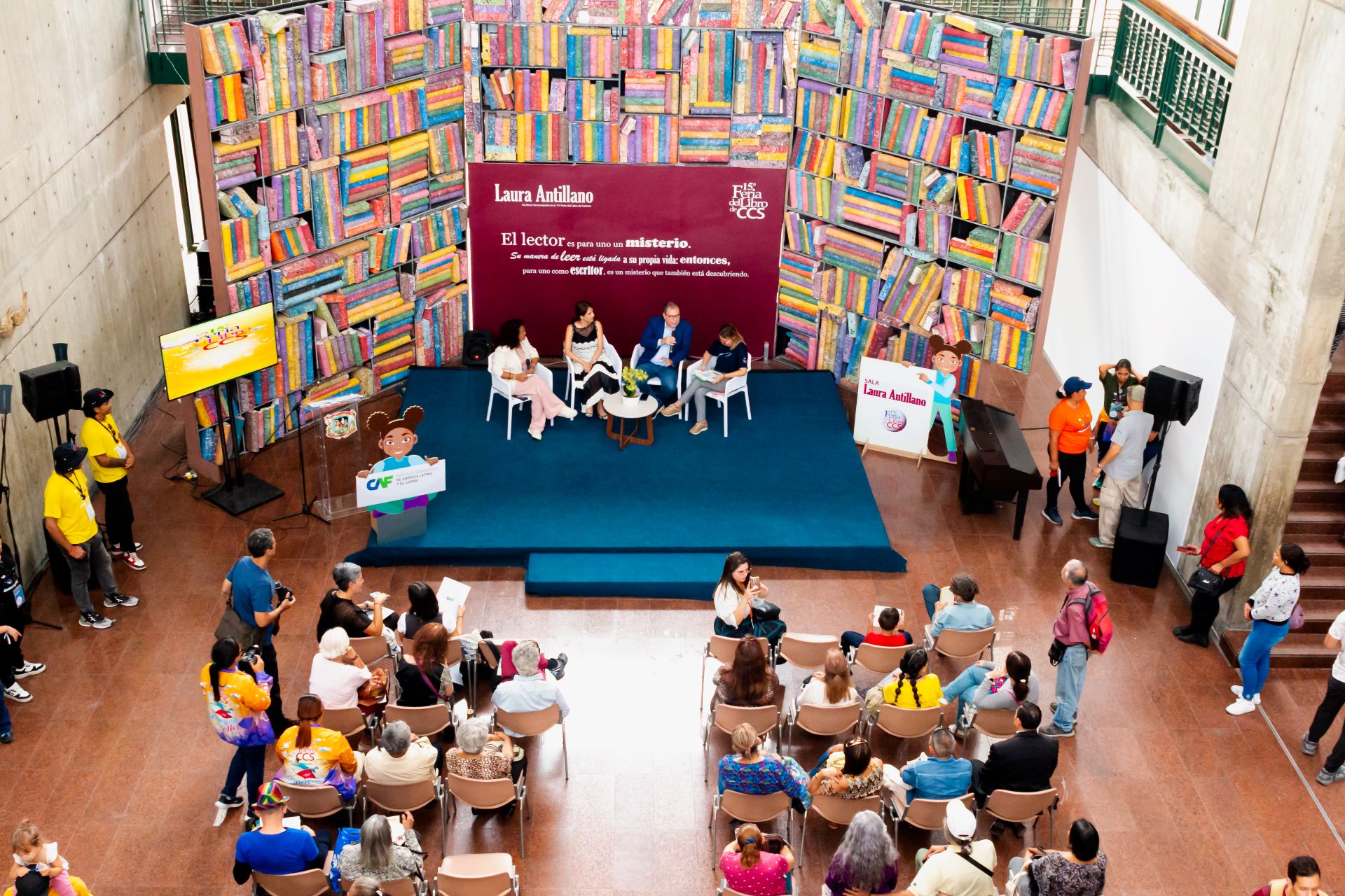 Del 21 al 30 de septiembre se llevó a cabo en Caracas la 15° edición de la Feria del Libro, en los espacios de la Galería de Arte Nacional. Más de 100 mil personas tuvieron la oportunidad de disfrutar presentaciones de libros, foros y conferencias. Además, con apoyo de CAF –banco de desarrollo de América Latina y el Caribe, por segundo año consecutivo dio a conocer sus investigaciones en formato digital, y brindó un espacio infantil donde los más pequeños disfrutaron de cuentacuentos y actividades creativas como juegos de memoria, hicieron la trivia de “Macondo sí tiene quien le escriba”, entre otras actividades que complementaron el maravilloso pabellón infantil de la feria que tuvo una programación mágica donde más de 20 mil niñas y niños disfrutaron con iniciativas muy especiales.