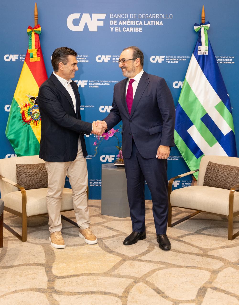 El presidente ejecutivo de CAF, Sergio Díaz-Granados, se reunió con el presidente electo de Bolivia, Rodrigo Paz Pereira, en Panamá. Durante la reunión se presentó el Programa de Apoyo para la Recuperación Económica 2025-2030 con un compromiso de financiamiento por USD 3.100 millones para los próximos cinco años. Se prevé que el 15% de este monto sea puesto a disposición del país en el corto plazo.