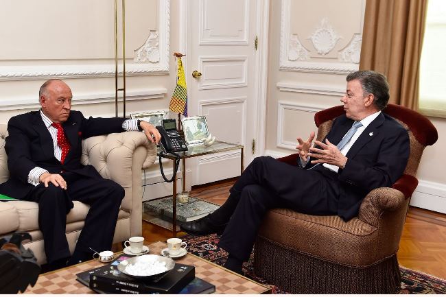 El presidente ejecutivo de CAF -Banco de Desarrollo de América Latina-, Enrique García, se reunió este lunes en Bogotá con el presidente de la República de Colombia, Juan Manuel Santos, para reafirmarle el compromiso de la institución con el desarrollo del país a través de la financiación de proyectos en infraestructura, agroindustria y fortalecimiento del sector financiero, entre otros.