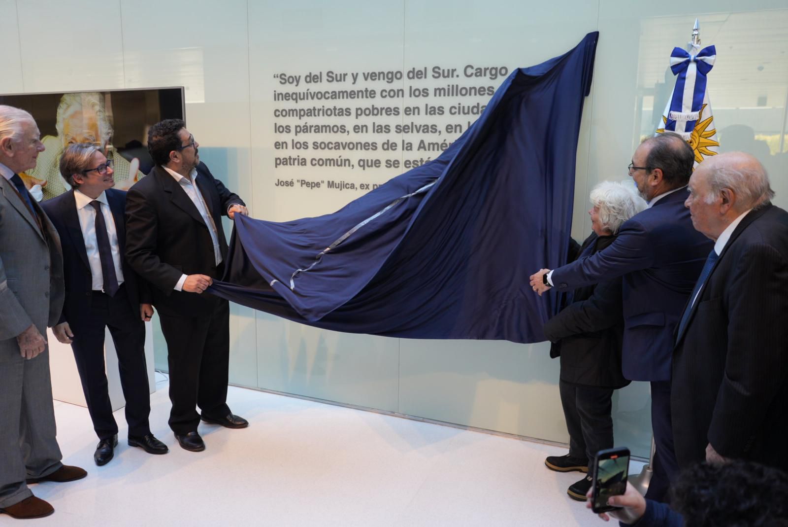 Al finalizar el evento, se descubrió una placa que la sede de CAF en Uruguay lucirá de ahora en más, con una frase del expresidente Mujica: “Soy del Sur y vengo del Sur. Cargo inequívocamente con los millones de compatriotas pobres en las ciudades, en los páramos, en las selvas, en las pampas, en los socavones de la América Latina, patria común, que se está haciendo”.