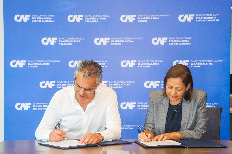 El convenio fue rubricado por Meza Jiménez y Azout, quienes estuvieron acompañados por Kathleen Núñez, ejecutiva de la Oficina País de CAF, Amílcar Sencion y Marcela Bejarano y Maria Fernanda Navarro de FCC Panamá.