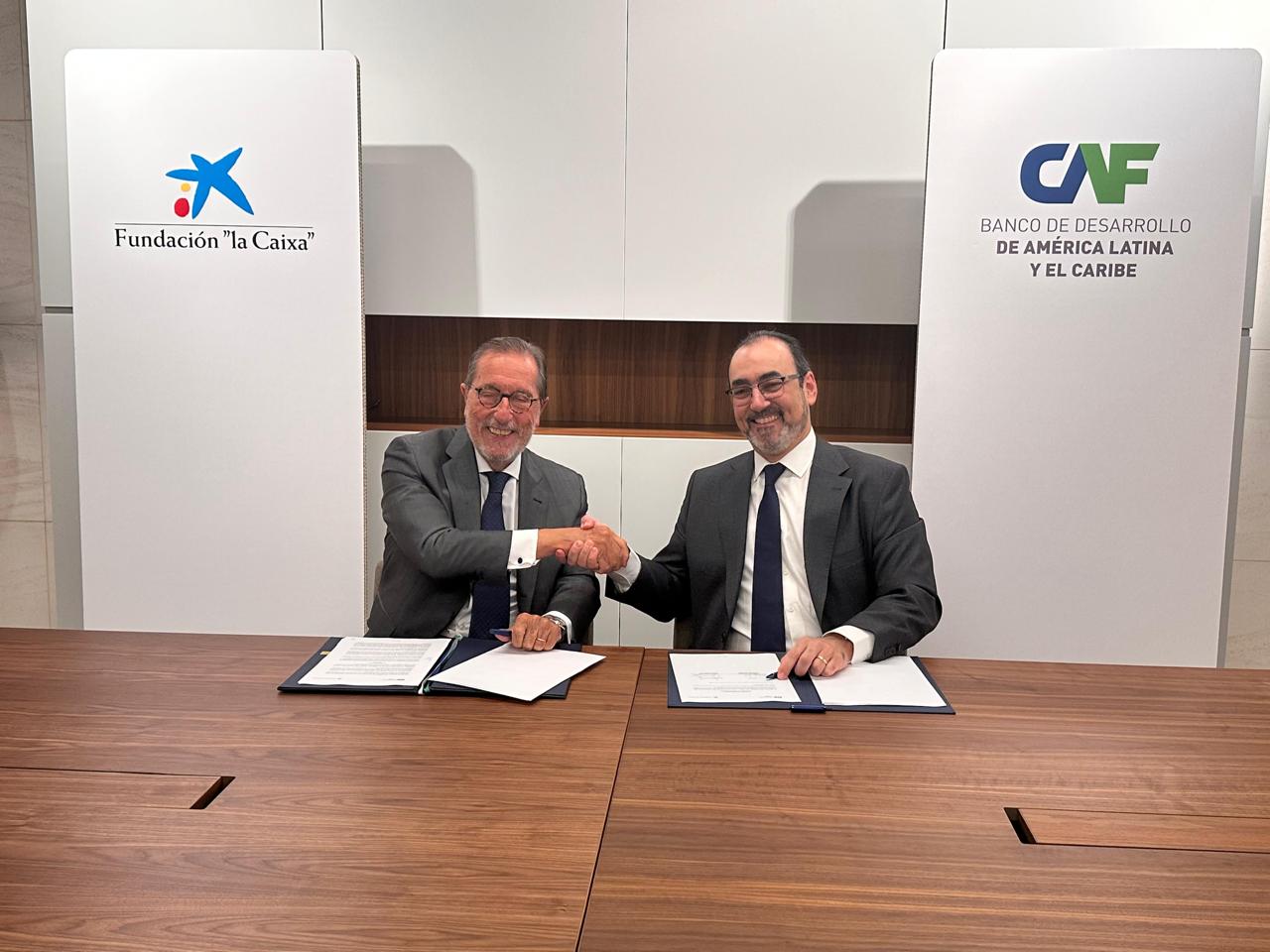 CAF -banco de desarrollo de América Latina y el Caribe- y la Fundación “la Caixa” anunciaron su compromiso de mejorar la calidad de vida y brindar mayores oportunidades a la población de la región mediante la firma de un Memorando de Entendimiento. Este acuerdo establece un marco general de colaboración institucional, orientado a generar soluciones de largo plazo que contribuyan al desarrollo sostenible y al bienestar inclusivo en América Latina y el Caribe.