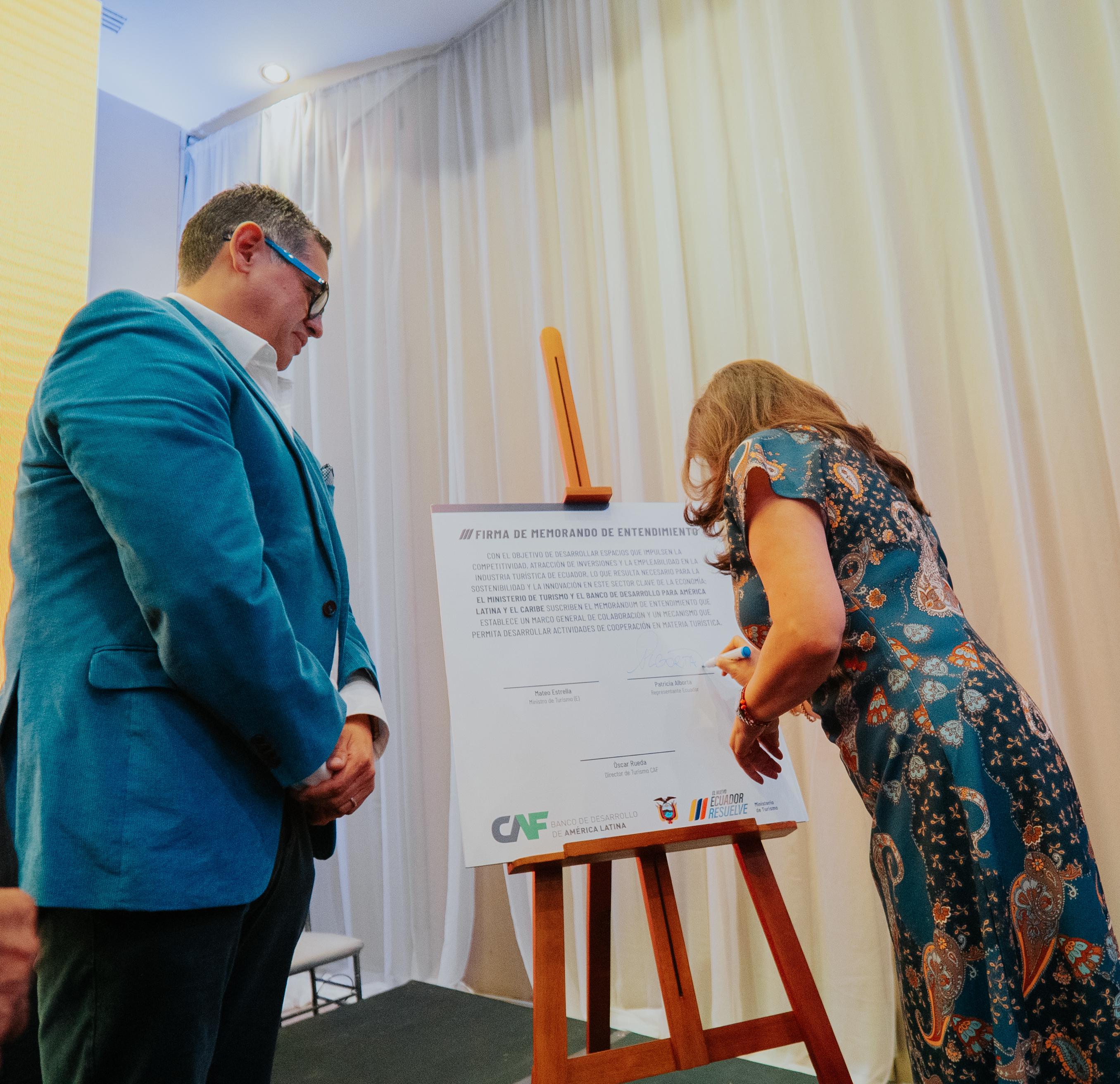 Durante el foro "Paz, Turismo y Competitividad", CAF y el Ministerio de Turismo de Ecuador firmaron un Memorando de Entendimiento para impulsar acciones que fortalezcan el turismo en el país, promoviendo inversiones, capacitaciones y el desarrollo sostenible del sector.