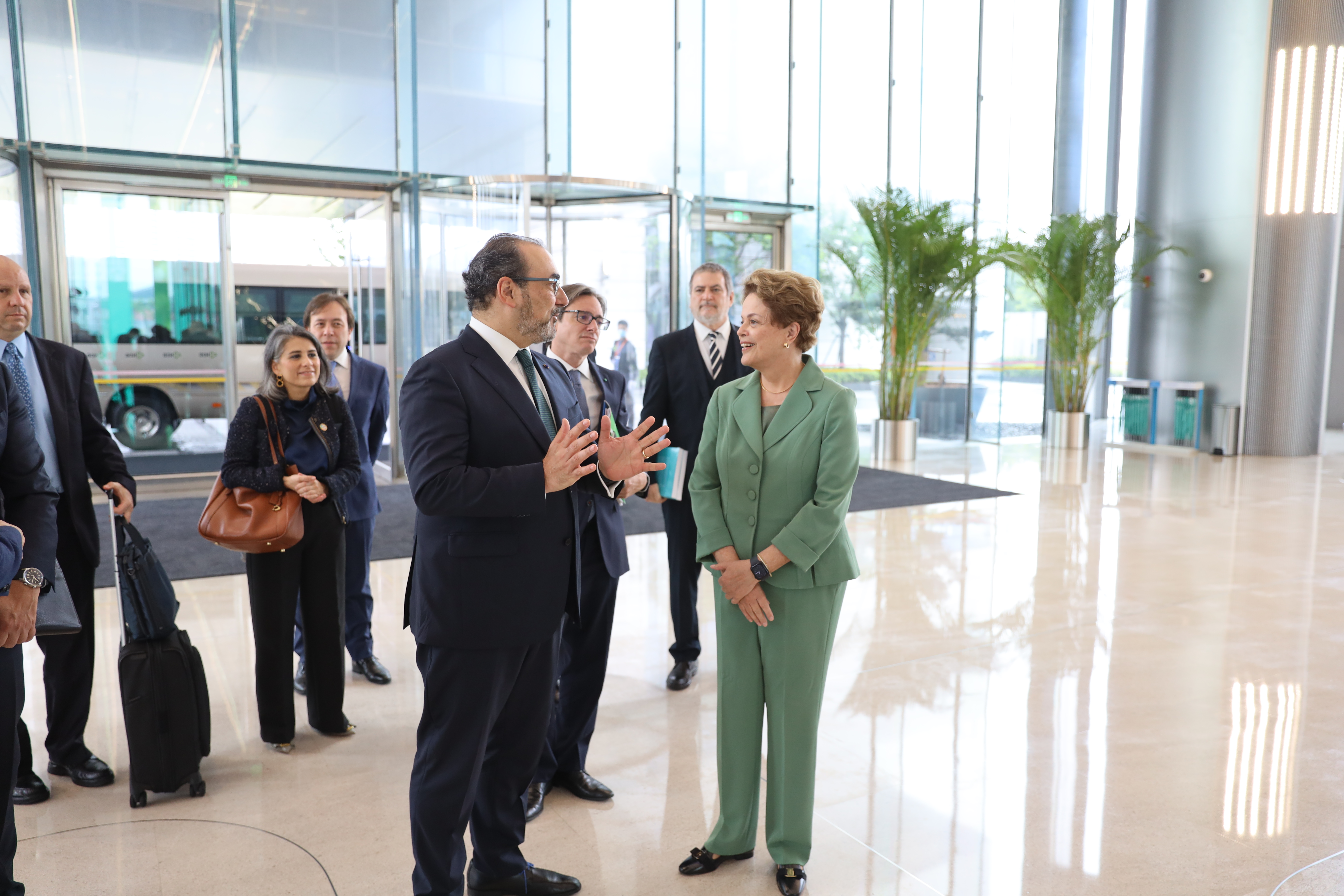 En la sesión de cierre de la visita, la Presidenta del BND, Sra. Dilma Rousseff, y el Presidente Ejecutivo de CAF, Sr. Sergio Díaz-Granados, aprovecharon la oportunidad para reafirmar los términos del Memorándum de Entendimiento de composición abierta suscrito por ambos BMD en 2016.