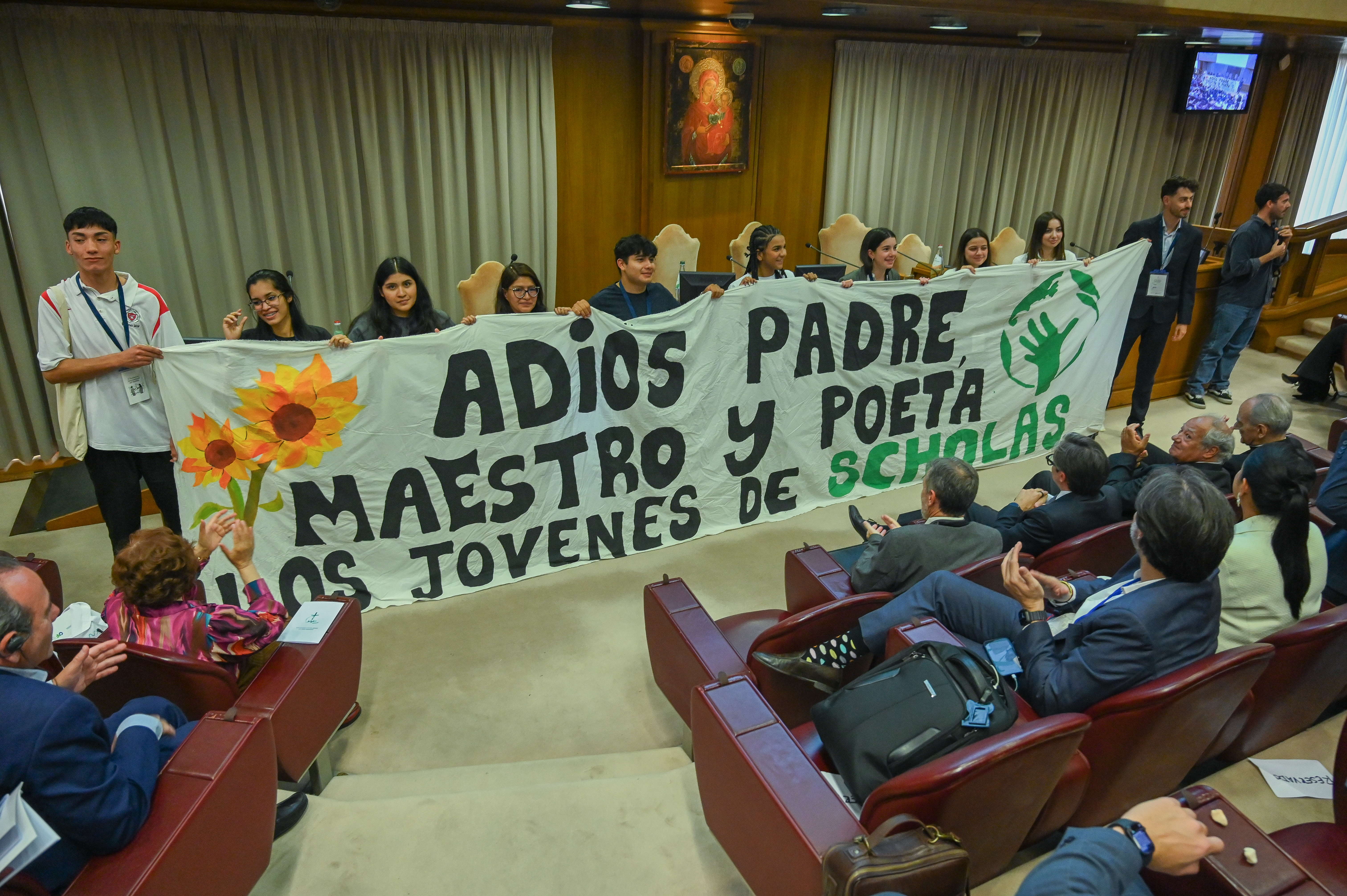 “Quiero agradecer el aliento y apoyo de la Santa Sede para llevar adelante la misión de Scholas Occurrentes a los 5 continentes. Quiero agradecerle a ustedes jóvenes de Scholas de diversas culturas, creencias y religiones, por hacer realidad en sus propias comunidades la cultura del encuentro y la construcción de la paz. Algunos me preguntaron, ¿ahora que murió el Papa Francisco, Scholas va a seguir? Les cuento una anécdota, esta misma pregunta se la hice personalmente junto a Quique al Papa Francisco. Él nos preguntó sí creíamos en Dios, le contestamos que sí medio avergonzados. Le tomó dos años discernir si esta obra procedía de Dios, y sólo entonces firmó el quirógrafo,” manifestó José María del Corral.