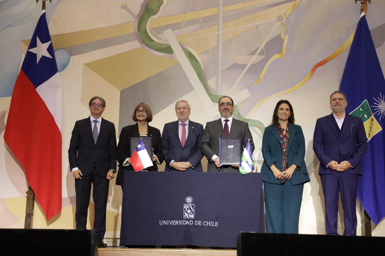 El acuerdo fue suscrito por el presidente ejecutivo de CAF, Sergio Díaz-Granados, y la rectora de la Universidad de Chile, Rosa Devés Alessandri, en el marco del Foro Internacional "América Latina ante el desafío de la integración", realizado en el Salón de Honor de la Casa Central de la institución académica.