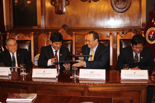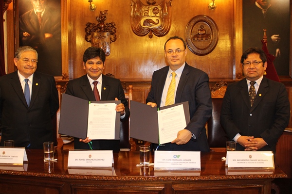 CAF -banco de desarrollo de América Latina- y la Universidad Nacional de San Agustín de Arequipa (UNSA) firmaron un Acuerdo Marco de Colaboración mediante el cual coordinarán actividades conjuntas para reforzar la formación académica de estudiantes y docentes de la carrera de Economía en la universidad.