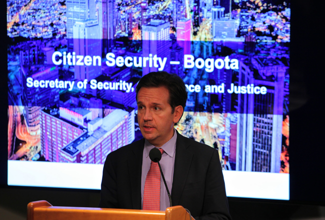 Por su parte, Daniel Mejía, secretario de seguridad de Bogotá, hizo énfasis en las políticas innovadoras de prevención, en especial en zonas de alta violencia de Bogotá, que permitieron tener en 2016 las más bajas tasas delictivas en décadas en la ciudad.