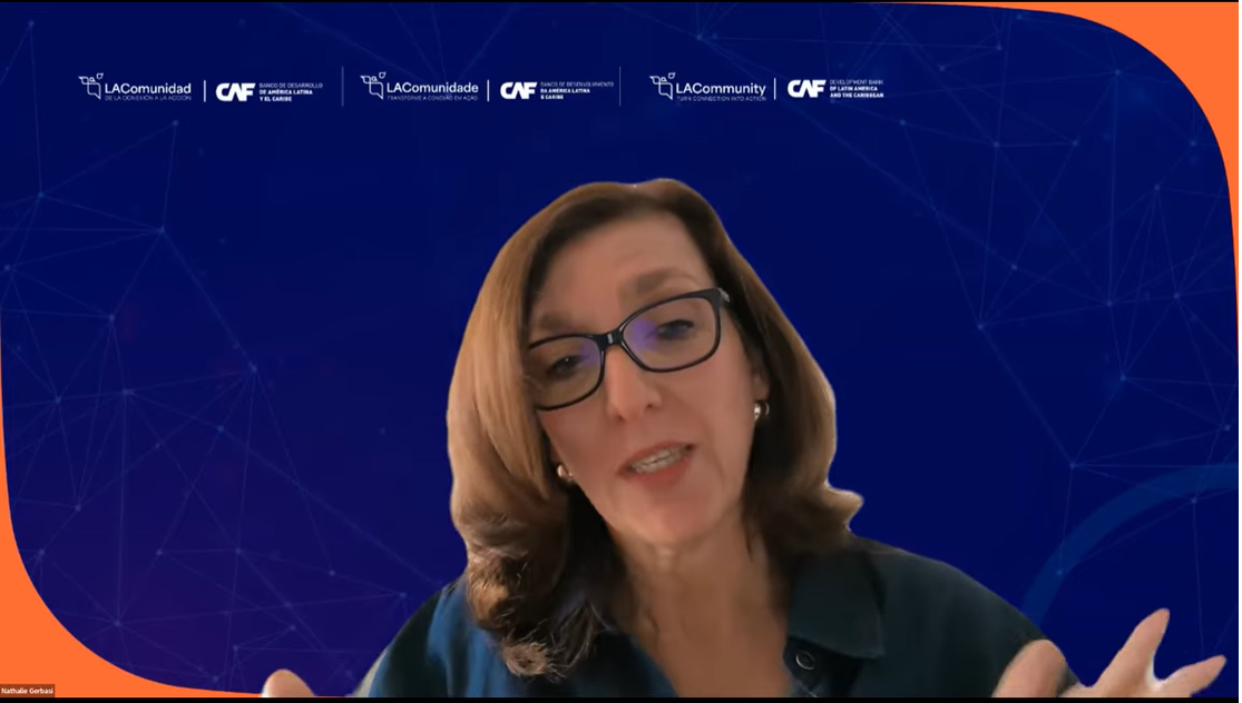 Por su parte, Nathalie Gerbasi, Directora de Desarrollo Institucional y Capacitación de CAF, destacó que LAComunidad es un “espacio de diálogo que busca ofrecer contenidos especializados y transversales para los egresados de actividades de CAF. Allí pueden compartir experiencias, conocer y entender los recorridos de sus pares en otros países o cargos similares al enfrentar problemas públicos en la región.” Con esta actividad en particular, uno de los propósitos es que los miembros adquieran herramientas para diseñar políticas públicas más efectivas, sostenibles y que logren trascender para beneficio de toda la ciudadanía.