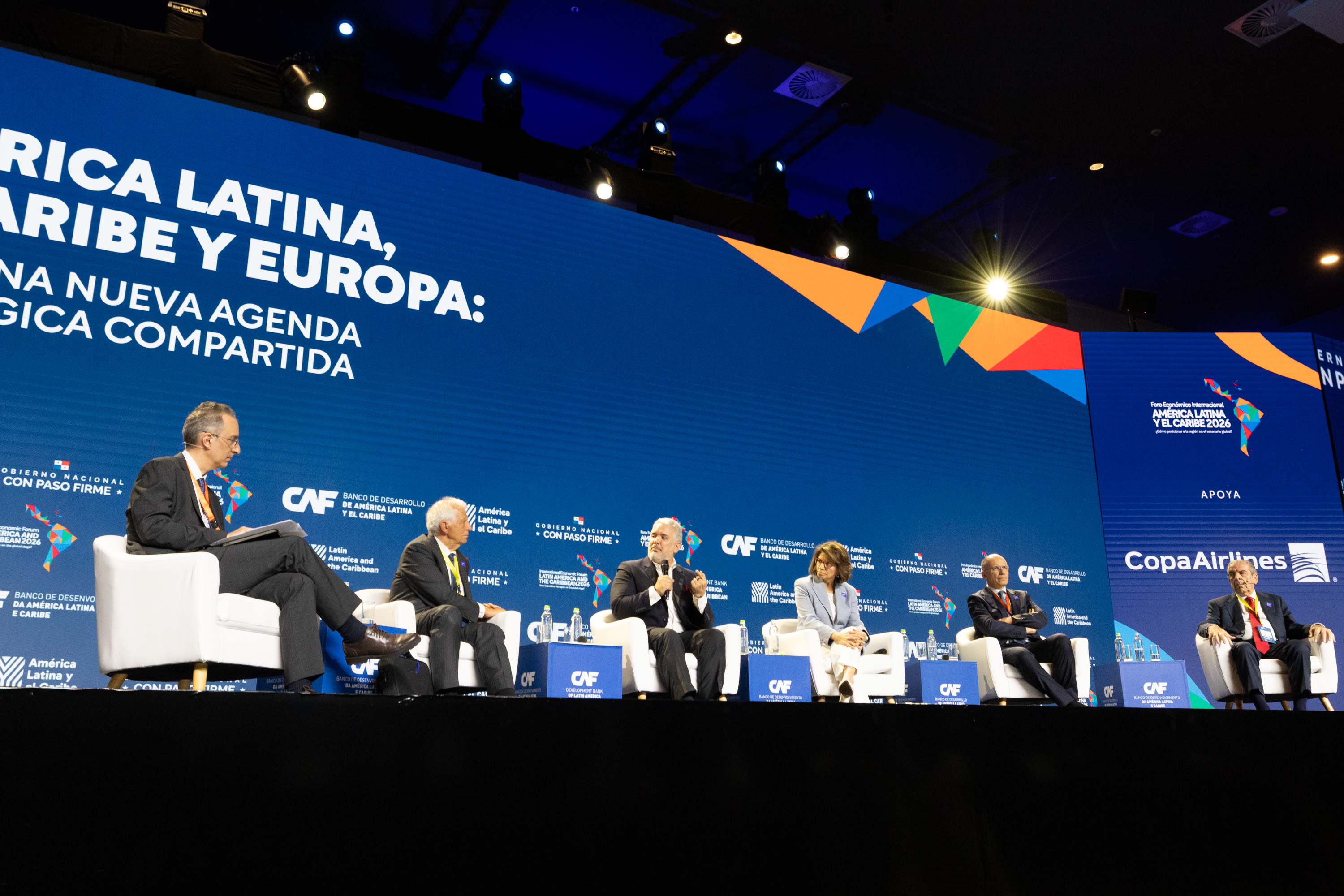 Participaron del panel América Latina, Caribe y Europa: Hacia una Nueva Agenda Estratégica Compartida - Enrico Letta, ex primer ministro de Italia; Josep Borrell, ex vicepresidente de la Comisión Europea; Eduardo Frei, ex presidente de Chile; Laura Chinchilla, ex presidenta de Costa Rica; e Iván Duque, ex presidente de Colombia. La moderación estuvo a cargo de Andrea Rizzi, corresponsal de Asuntos Globales y columnista de El País.