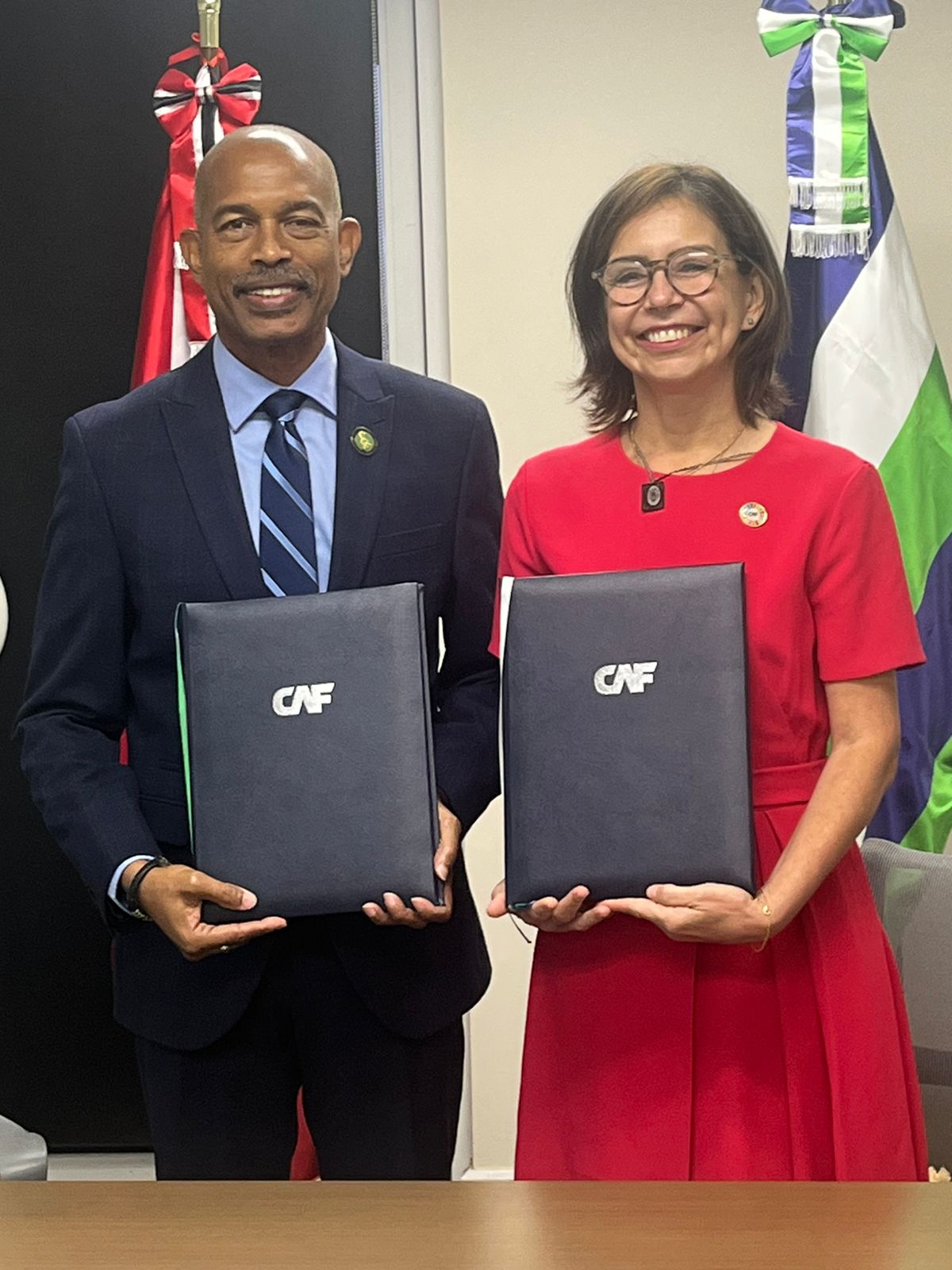 Durante las reuniones de Jefes de Gobierno del CARICOM, celebradas en Trinidad y Tobago, la Vicepresidenta de CAF, Carolina España, y el Director General de la CDF, Rodinald Soomer, firmaron un Memorando de Entendimiento para trabajar juntos en la movilización de nuevos recursos para sectores clave de desarrollo del Caribe, con un enfoque en transición energética, emprendimiento juvenil, biodiversidad, inclusión financiera, desarrollo humano y digitalización.