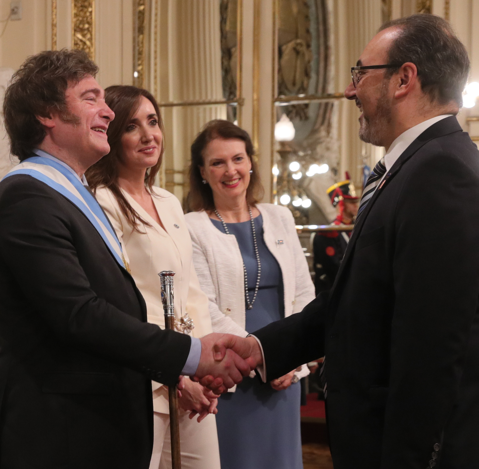 El presidente ejecutivo de CAF - banco de desarrollo de América Latina y el Caribe, Sergio Díaz Granados, estuvo presente en la Ceremonia de Traspaso de Mando de Javier Milei, el nuevo presidente de la República Argentina. Posteriormente, participó de la ceremonia de salutación de delegaciones extranjeras e invitados especiales del presidente y de la Ceremonia Interreligiosa, que tuvo lugar en la Catedral de Buenos Aires.