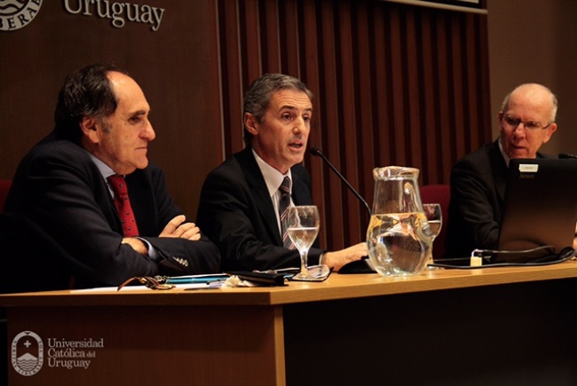 La Universidad Católica del Uruguay, a través del Instituto de Competitividad de su Facultad de Ciencias Empresariales, recibió a un grupo de alumnos y docentes en el marco de la conferencia "Construcción de la Competitividad: la importancia de su institucionalidad y la participación", que tuvo como oradores al contador Martín Dibarboure, subdirector de la Oficina de Planeamiento y Presupuesto (OPP) y al profesor experto en estrategia Sabin Azua, director de la empresa B+I Strategy, invitado especial proveniente del País Vasco.