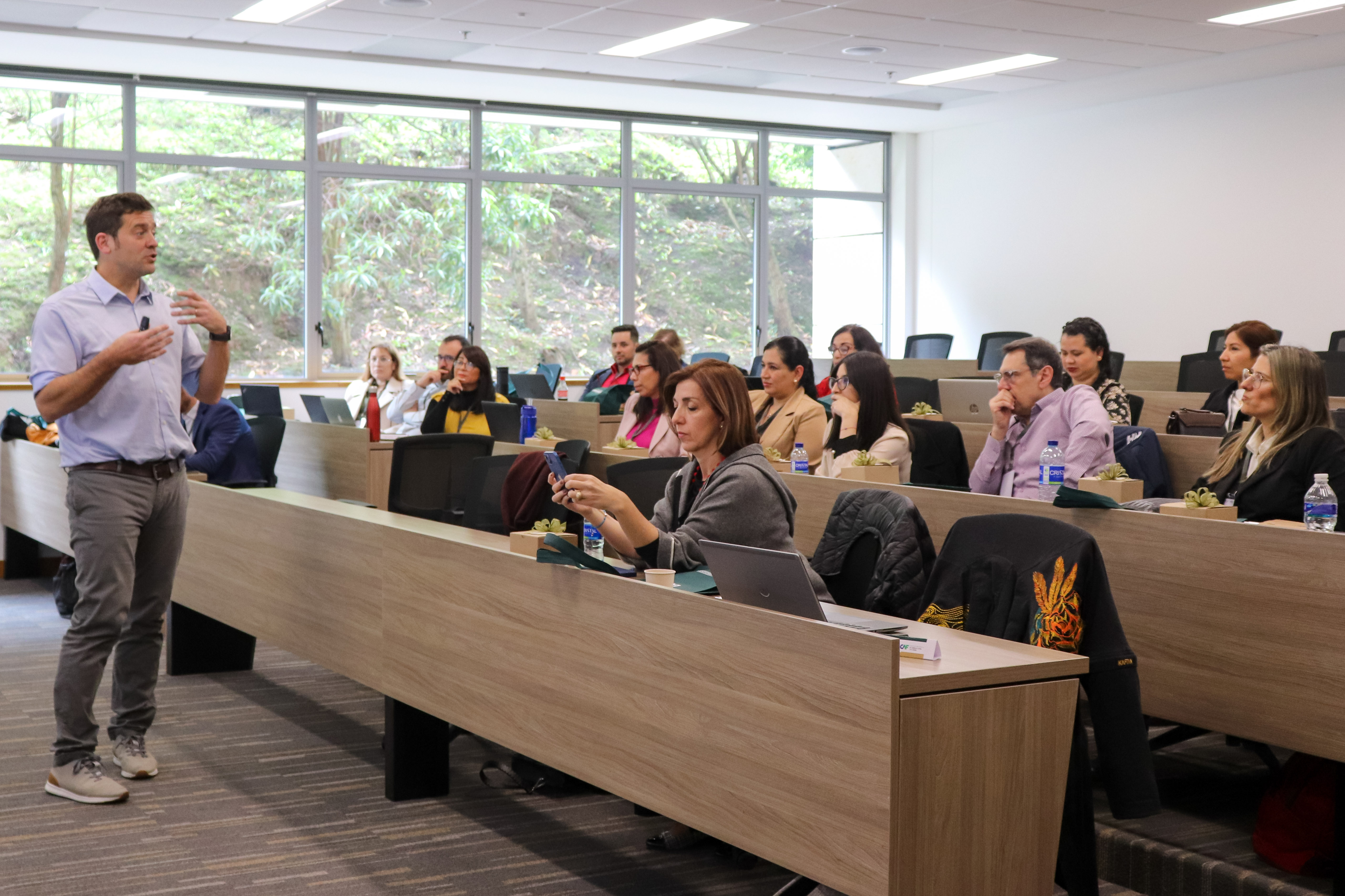 La apertura oficial estuvo a cargo de Rodrigo Peñailillo, representante de CAF en Colombia, quien destacó la trascendencia de este evento colaborativo: "Esta unión de esfuerzos y aprendizajes resulta fundamental para impulsar una auténtica transformación en nuestra región. Las experiencias compartidas y las sinergias generadas no solo enriquecen la calidad de la formación, sino que también contribuyen a forjar líderes mejor preparados para abordar los retos que definen nuestro tiempo". Resaltando la perspectiva integral del Encuentro de Coordinadores CAF, enfatizando en la importancia de enriquecer los programas de formación, nutrir la visión de líderes capaces de afrontar y superar los desafíos actuales y futuros.