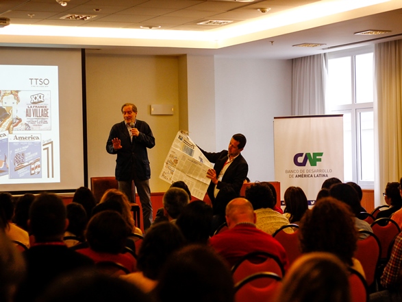 Durante el encuentro se contó con intervenciones de Janine Warner y Mijal Lastrebner, directoras de SembraMedia; Jean-François Fogel, director del Executive Master of Media Management del Instituto de Estudios Políticos de Paris (Sciences Po); así como de Jeff Jarvis, profesor en The City University of New York; María Catalina Colmenares, Program Officer de Media Development Investment Fund; y Carlos Serrano, estratega digital del proyecto En Malos Pasos. Asimismo, los periodistas peruanos Milagros Salazar, directora de Convoca; David Hidalgo, director de Ojo Público, y Esther Vargas, directora de Clases de Periodismo, expusieron sobre sus emprendimientos periodísticos on line.